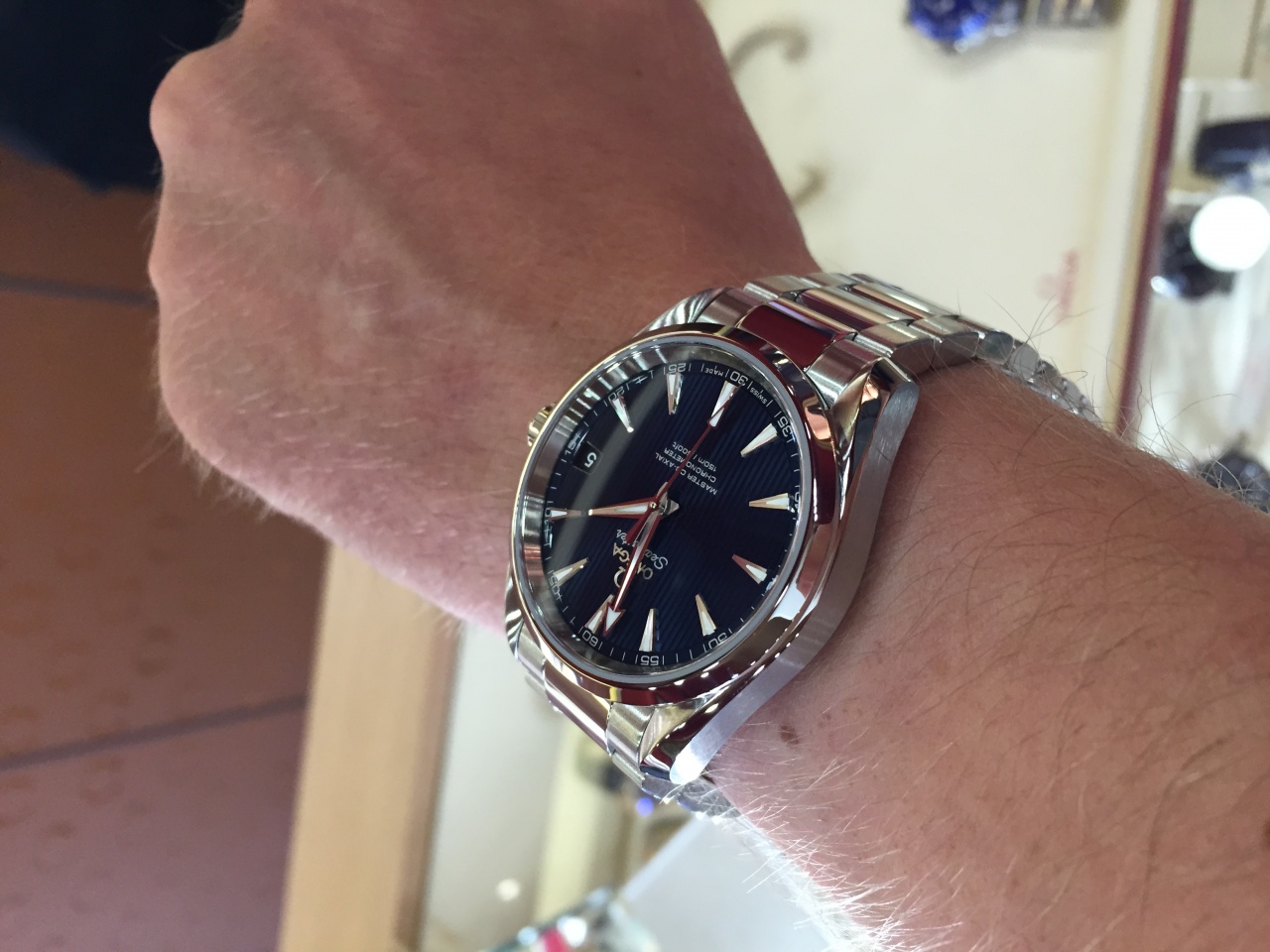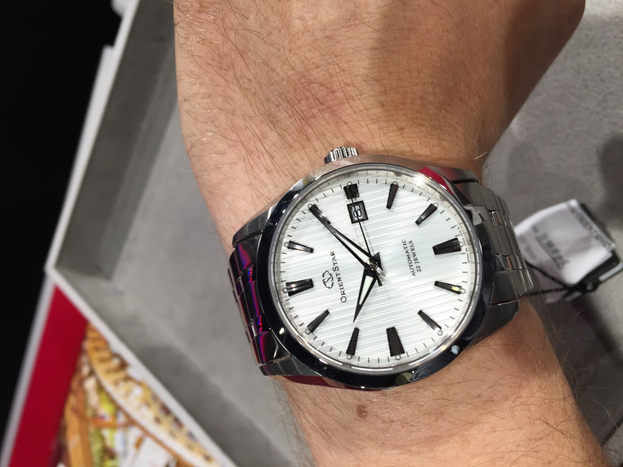Даже заехал примерить японскую акватерру - ориент. На фотках понравились часы, а в живую, к сожалению, разочаровался, в т.ч. из-за браслета, он показался совсем уж неудачным. Наверное, надо было примерять ориент до акватерры, а не наоборот