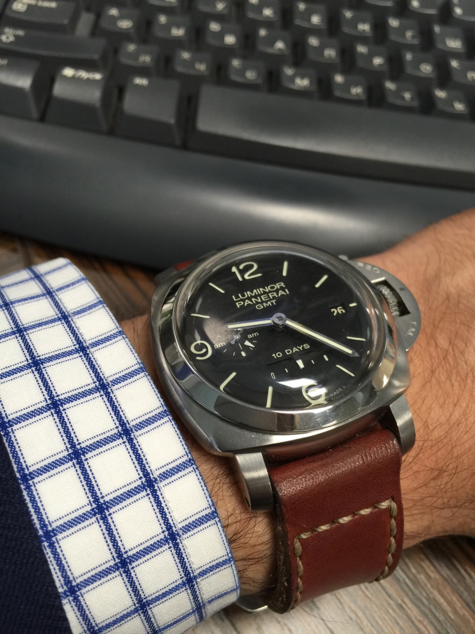 Удивительно гармоничная модель, сочетающая в себе отличный функционал (второй часовой пояс, индикатор АМ/РМ, дата, 10-дневный запас хода, система быстрой смены ремней) с красотой и лаконичностью форм (сатинированный корпус Luminor1950, циферблат сэндвич, купольный сапфир)