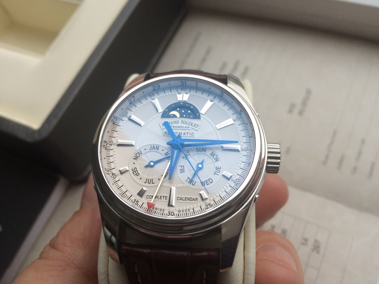 Продам часы Armand Nicolet Complete Calendar M02, состояние идеальное. Покупались новыми в 2014 году. Одевались очень редко. На полном комплекте (коробка, документы). Рассмотрю интересные варианты обмена с Вашей или моей доплатой.