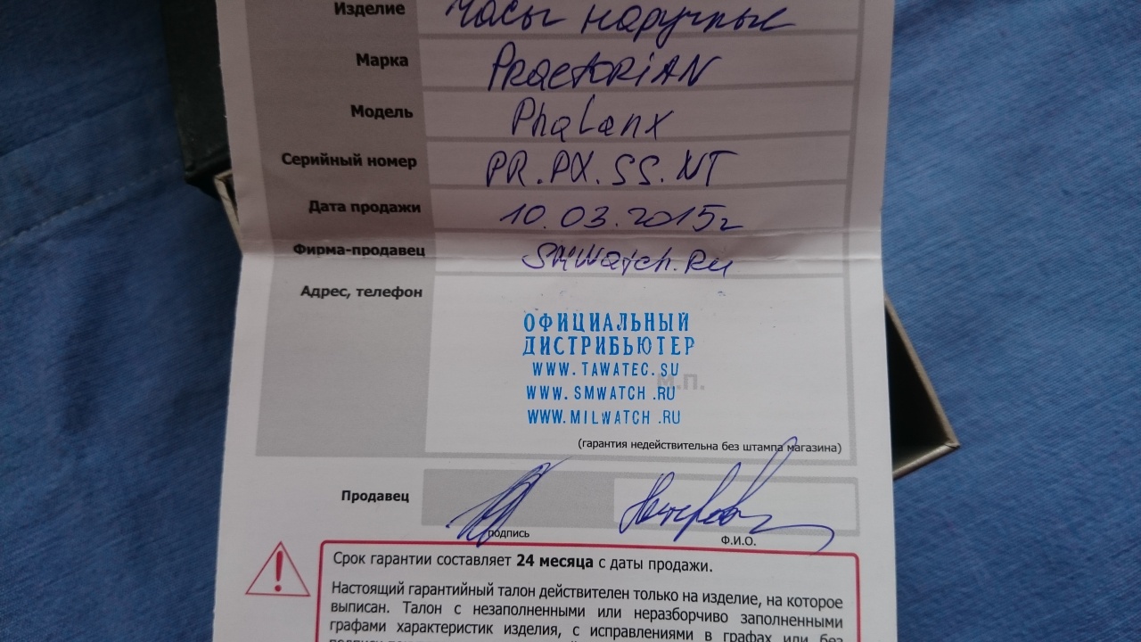 http://smwatch.ru/praetorian/4...x-prpxssnt.html . там же можно посмотреть ттх. Были куплены год назад надевались один раз, состояние новых. Ещё год на гарантии до марта 2017г. Соответственно все чеки, бумажки и коробка в комплекте. Тритиевая подсветка очень красивая, ход очень точный + 2-3 секунды в месяц. Часы в Москве (пересыл обсуждается отдельно).
