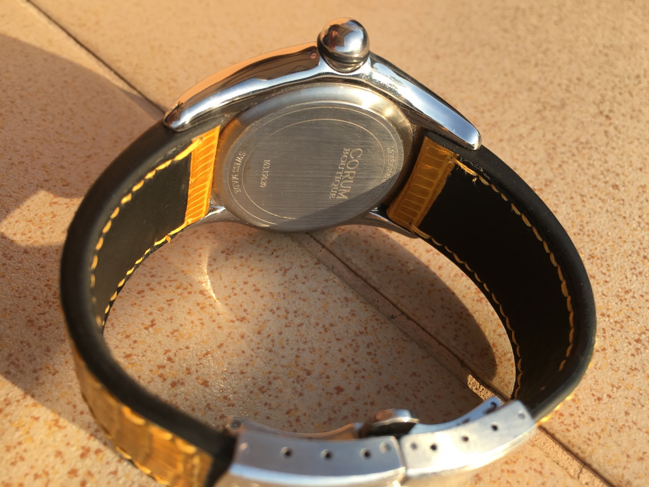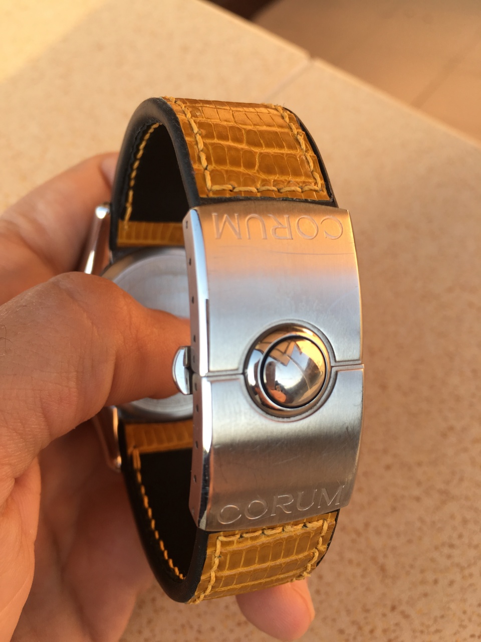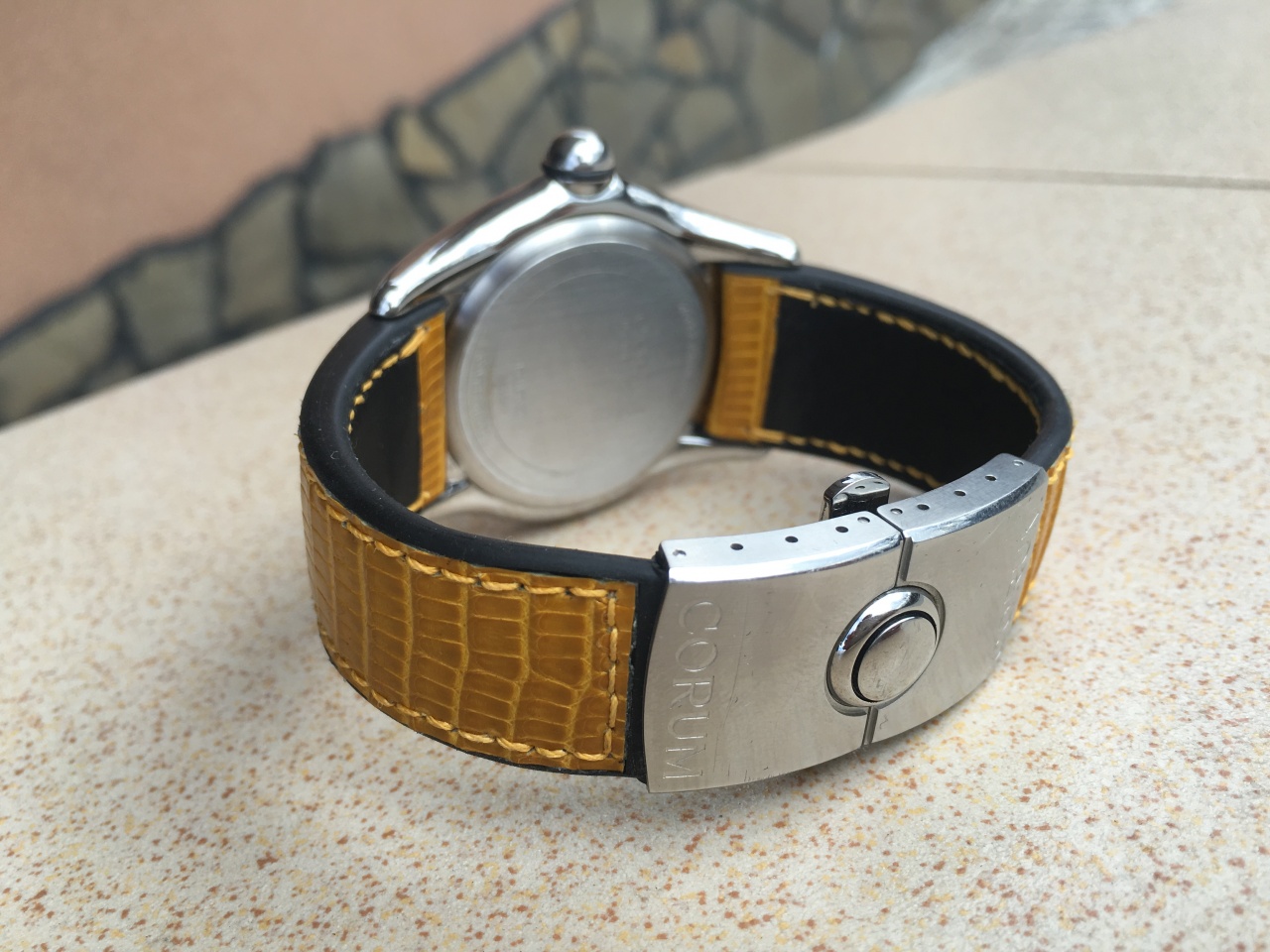 CORUM BUBBLE с циферблатом темно-желтого цвета.