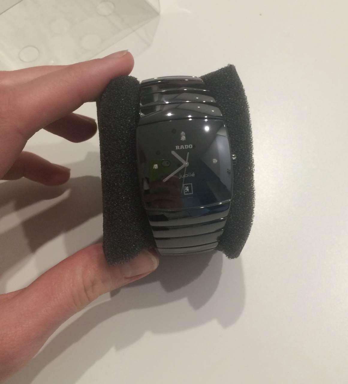 Новые часы RADO Sintra черного цвета из высокотехнологичной керамики, стойкой к появлению царапин. Артикул R13723702. Размер 35х45 мм, сапфировое стекло, кварц. Оригинал, если Вы сомневаетесь в подлинности, можем встретиться в часовом салоне на Ваш выбор и подтвердить подлинность там. Подарили мужу на Новый год, но он носить не будет, предпочитает другие формы часов. Гарантия официального дилера с января 2016. Были куплены в Москве. Полный комплект документов, а также коробка и пакет. Фото часов вышлю по запросу. Цена часов в часовых салонах - 175900.