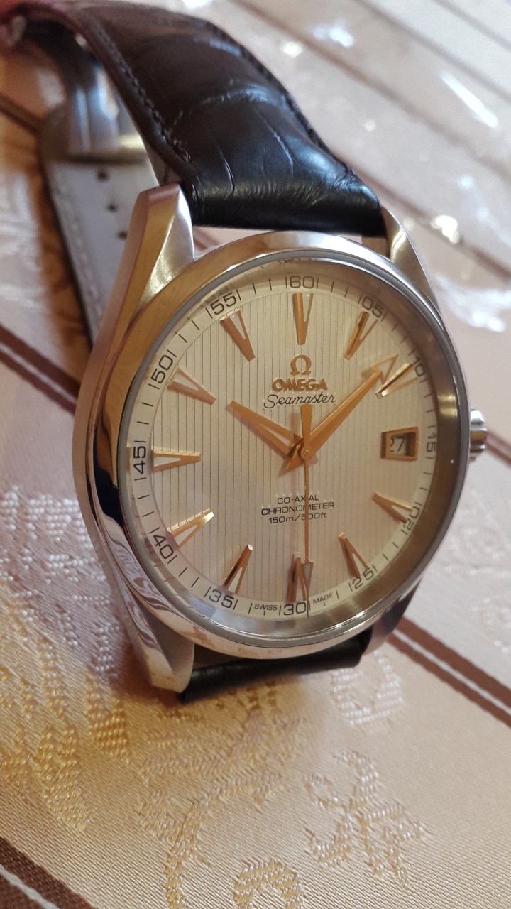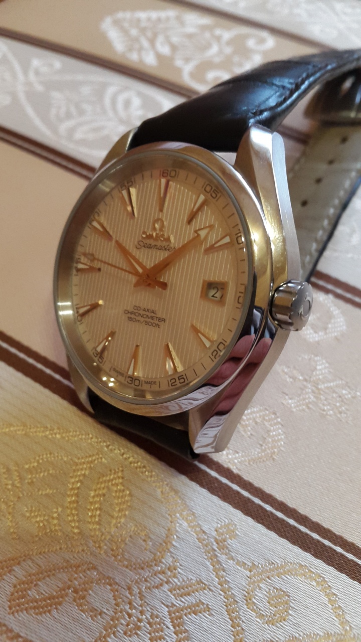 Продам классические часы Omega Seamaster Aqua Terra с золотыми стрелками и метками!