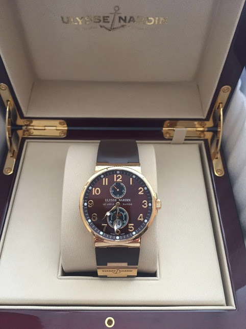 Продаю в Москве, Ulysse Nardin Maxi Marine Chronometer 41 266-66 limited edition №3217. Все документы и коробка в наличии, царапин нет, часы выглядят очень свежо, носились редко, чуть чуть поблек цвет ремешка.