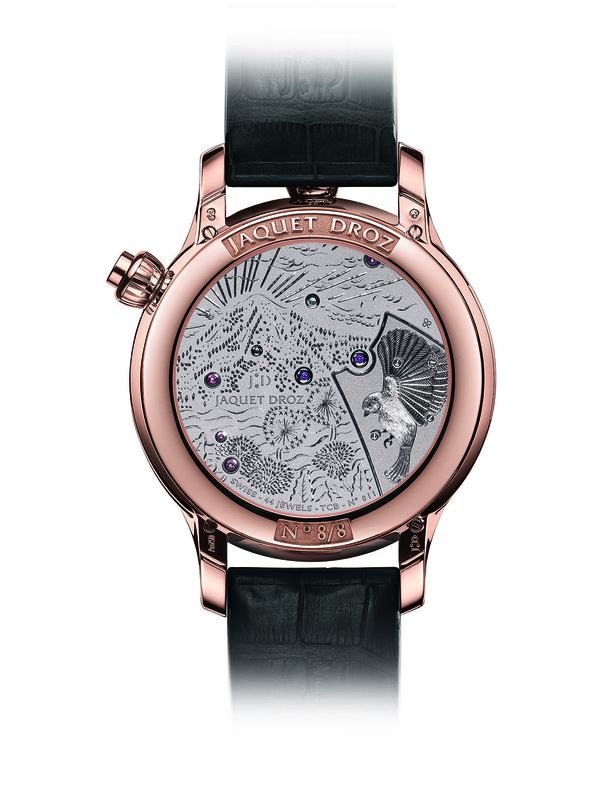 Дизайнеры Jaquet Droz предложили новую интерпретацию циферблата Grande Seconde и его культовой цифры «8». Верхняя часть «восьмерки» предназначена для отображения времени (часов и минут), а нижнюю, под куполом из сапфирового стекла, занимает автоматон в виде поющей птицы.