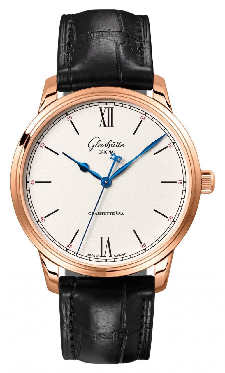 Первые две из них - в 18-каратном розовом золоте и в нержавеющей стали - выполнены в элегантном классическом стиле, имеют круглые полированные корпуса, диаметром 40,0 мм. На торце рифленой заводной головки, расположенной на 3 часах, выгравирован логотип бренда Glashütte Original. Сапфировое стекло защищает циферблат серебристого цвета с мелкозернистой отделкой, с черными напечатанными римскими цифрами и часовыми индексами. Стрелки вороненые; на противовесе секундной стрелки имеется объемное изображение логотипа бренда Glashütte Original. Модель оснащена мануфактурным немецким автоматическим механизмом Glashutte Original 36, разработанным, отделанным и декорированным в соответствии с канонами Glashütte и высокого часового искусства, с кремниевой спиралью, 100-часовым запасом хода, функциями индикации часов, минут, секунд (посредством соответствующих центральных стрелок). Поставляется на ремешке из кожи аллигатора с застежкой из 18-каратного розового золота или из нержавеющей стали. Цена версии модели в золоте составляет 15500 евро, а в стали - 8500 евро.