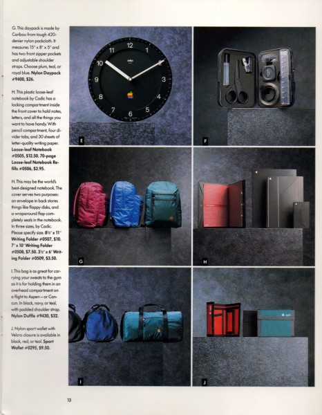 В описании устройства говорится, что оно оснащено защитой от проникновения жидкости, благодаря чему может выдерживать погружение в воду на глубину до 30 метров. Кроме того, в этом же каталоге представлен и настенный аналог часов, украшенных логотипом Apple. Их производством на тот момент занималась компания Braun.