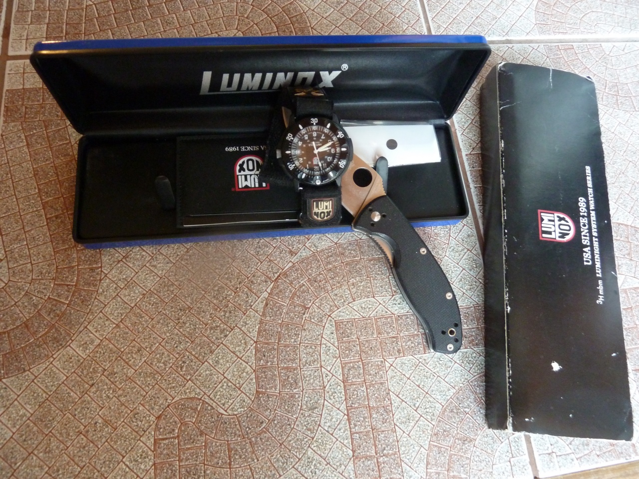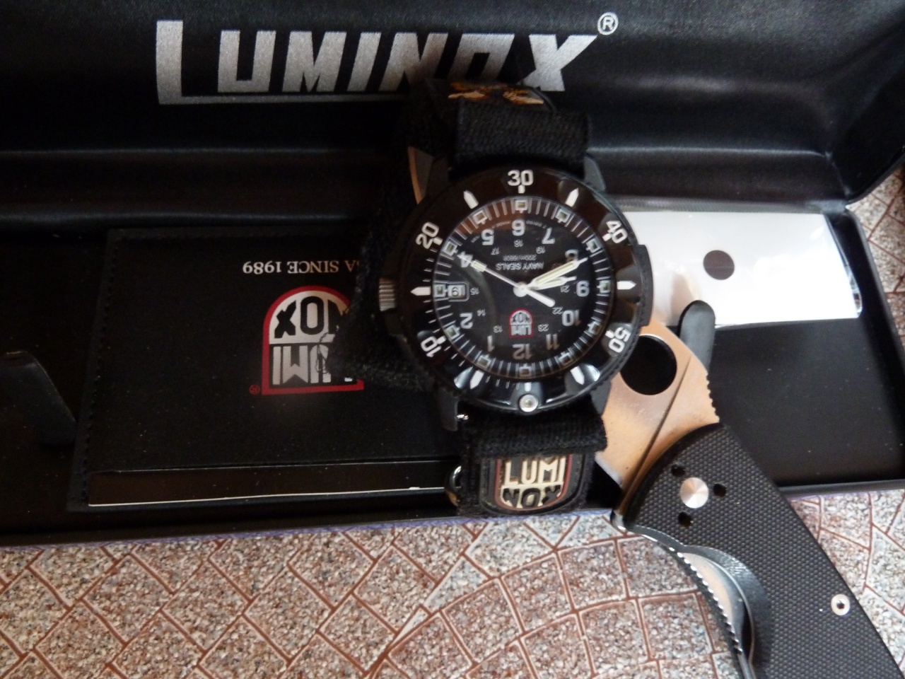Продаю вот такие надежные люмы "морских котиков", которые куплены пару лет назад на форуме для дачных поездок, где оооочень темно. Ход прекрасный, все колбы горят. Из недостатков - пара чуть заметных царапок на стекле, которые видны только при определенном повороте цифера и никак не мешают комфортному считыванию показаний, и задняя крышка потерта, т.к. постоянно терлась о ткань, а как иначе? Батарейке год, не менять еще года 4-5. Корпус карбон, часы невесомые, к чему привыкнуть так и не смог. На погружения 200 м не испытывал, т.к. для плавания есть "таймексы", но в воде иногда бывали - без проблем! Нож в комплект не входит. Торга нет, обмен с доплатой туда-сюда есть.