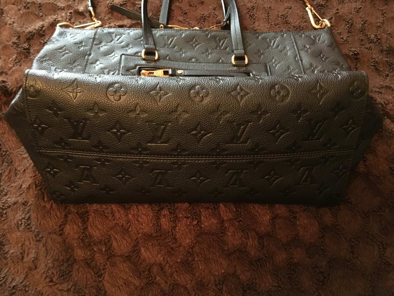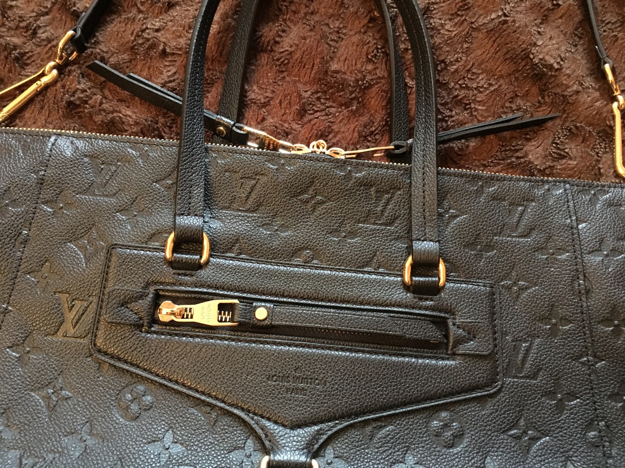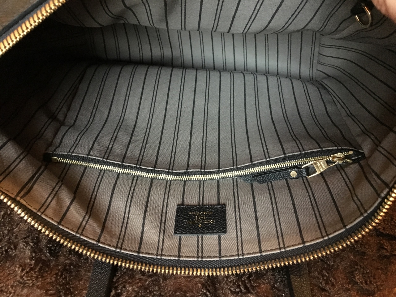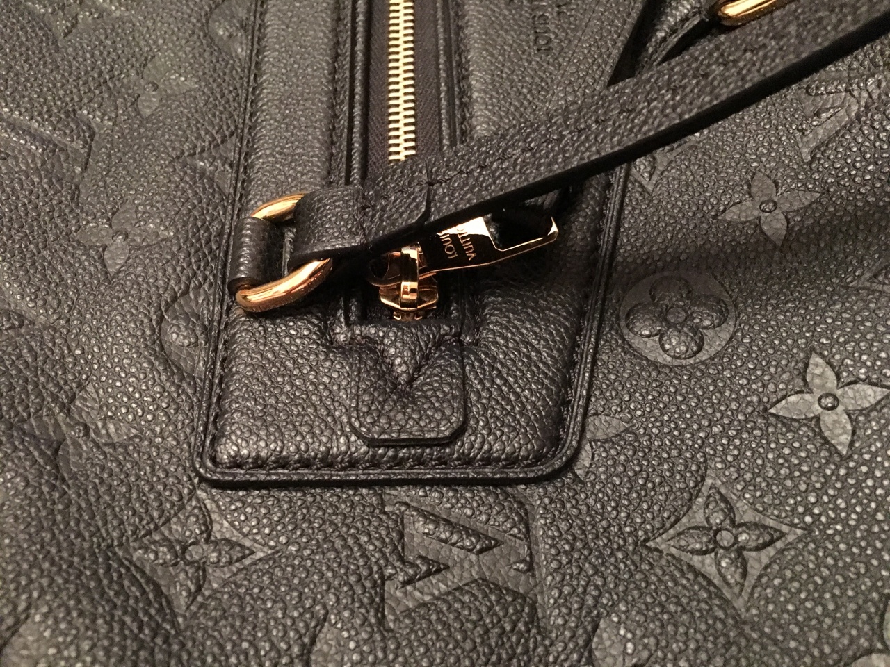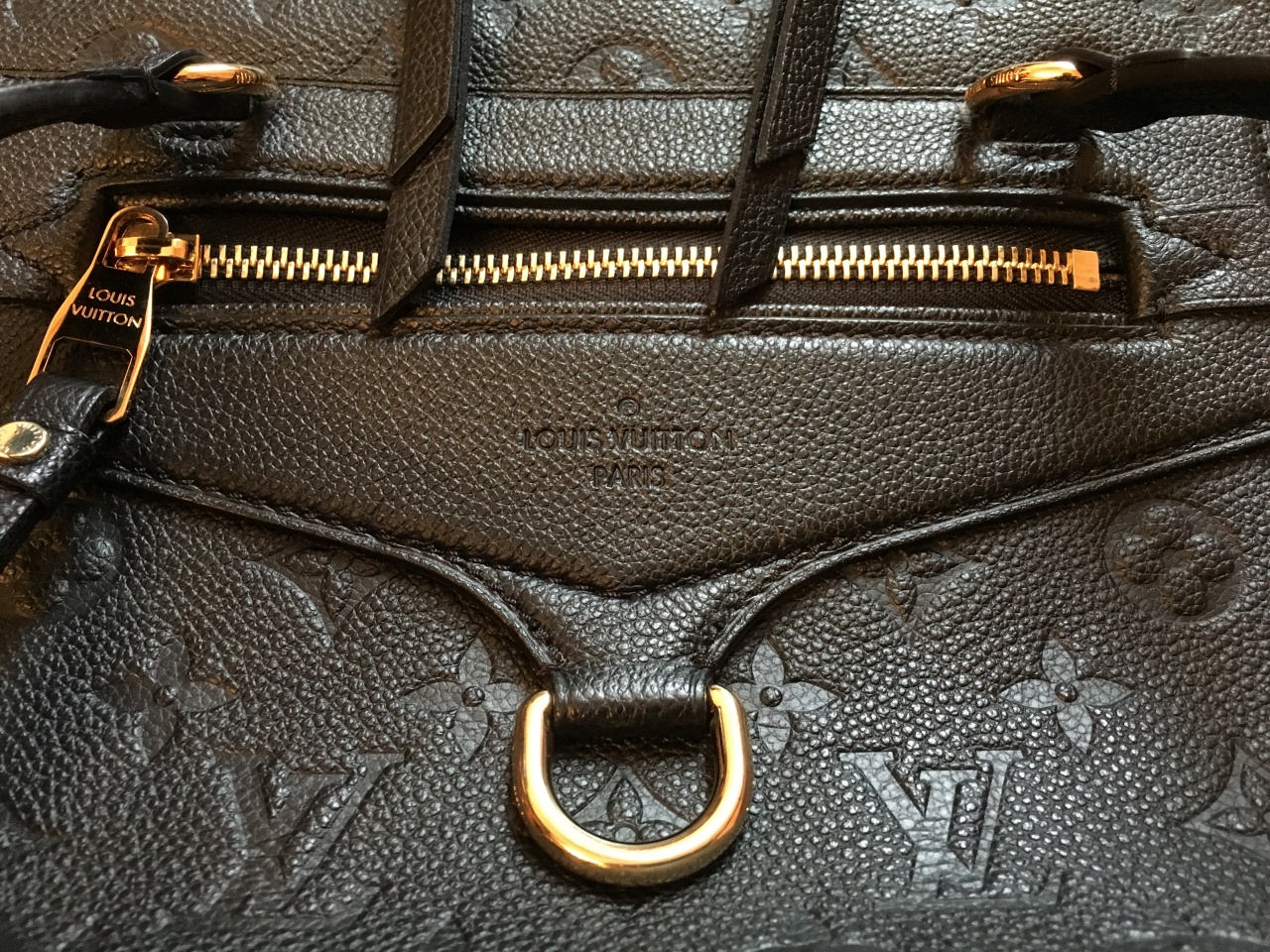 - Внешняя часть и отделка из тисненной кожи Empreinte Monogram;