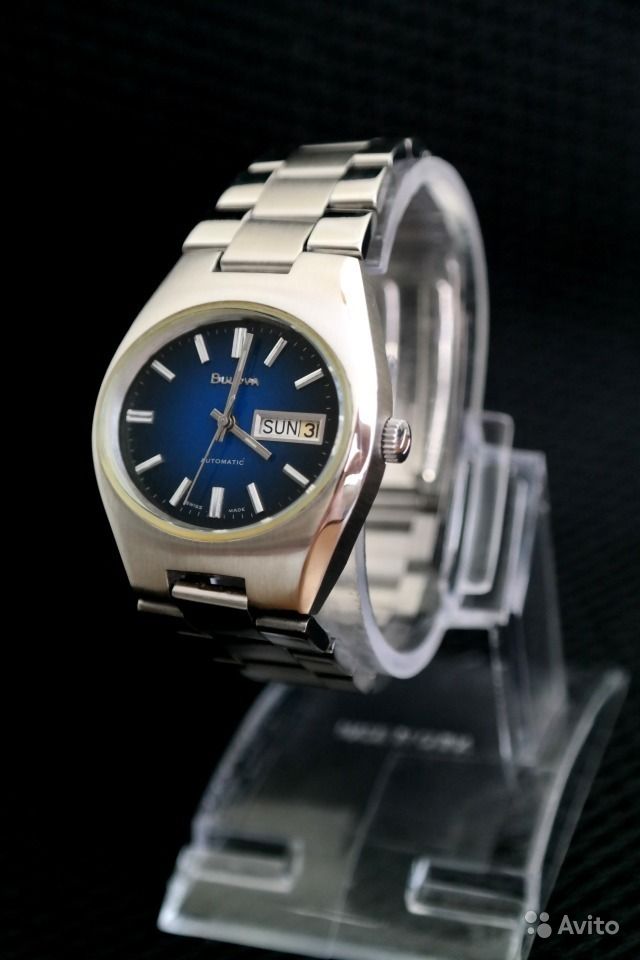 Часы швейцарские BULOVA механика,автоподзавод , полностью рабочие.Часовые метки полированы,стекло не пластик.На циферблате swiss made есть,заводная коронка родная с логотипом,браслет тоже.Точность + 8 сек в сутки.