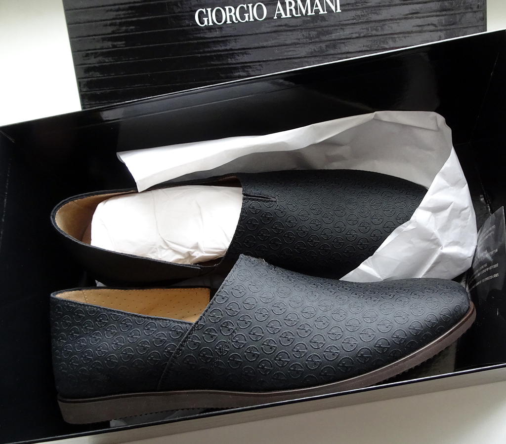 GIORGIO ARMANI стильные мужские лоферы-слипоны, черные!
