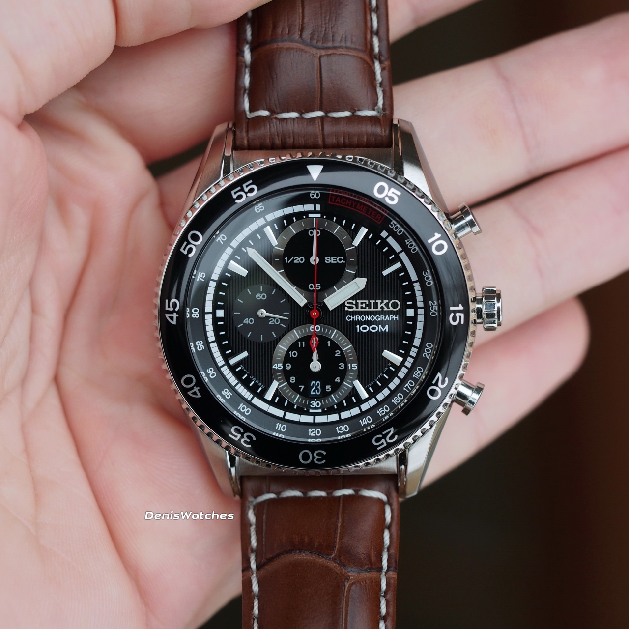 Спортивный хронограф с точностью 1/20 секунды на стильном кожаном ремне с контрастной строчкой