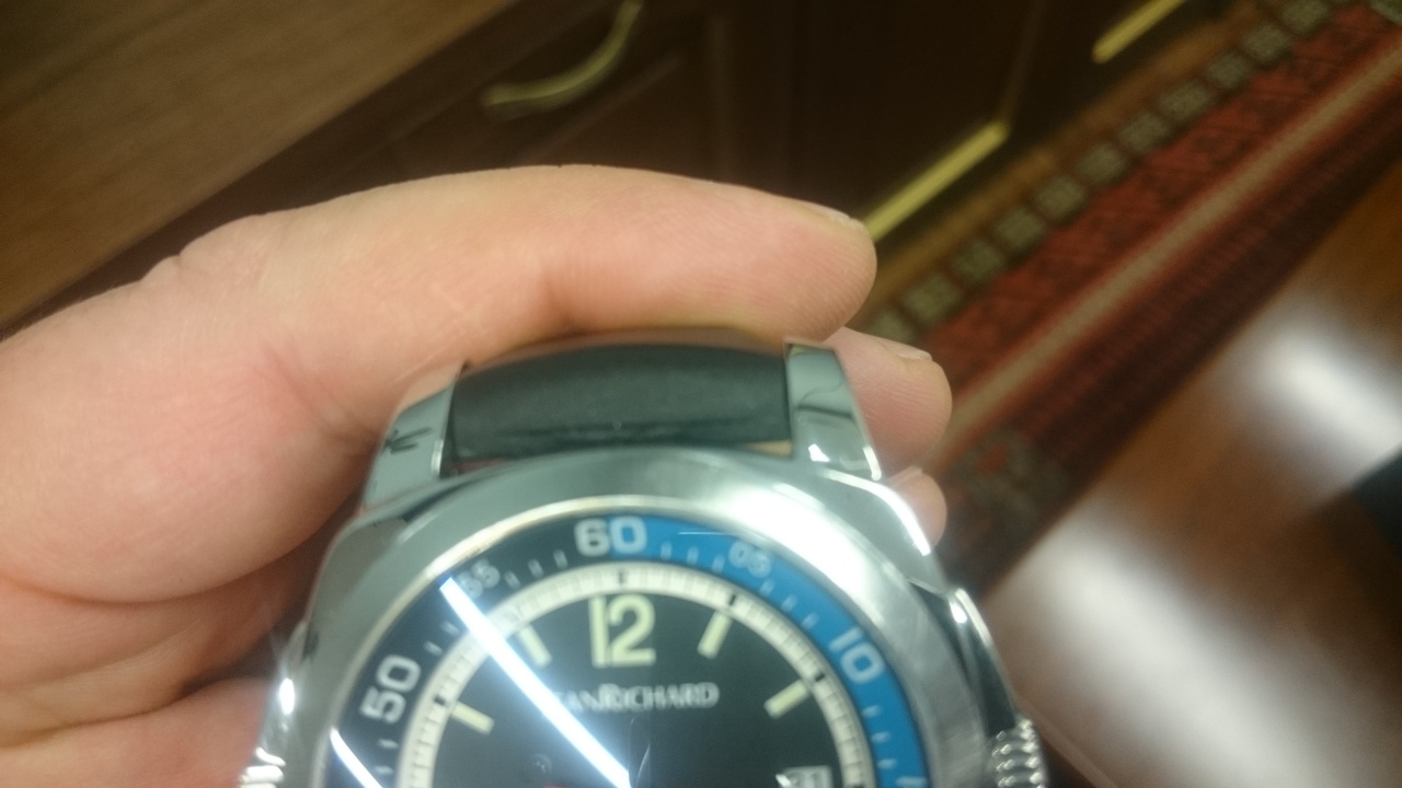 Часы прекрасно ложатся на руку, в отличие от большинства дайверов они не слишком высоки, каучук мягок и удобен. Часы на полном комплекте и в отличном состоянии. Причина, по которой не поставил АА - в месте крепления каучука к часам он дал трещинки (см.фото). Честно говоря, их вообще невозможно заметить, если специально не отогнуть и посмотреть. Поэтому - А. Мелкие царапки легко уберутся полировкой на 1 тон. При серьезном интересе могу укомплектовать хорошим кожаным ремнем от кого-нибудь из форумных мастеров.