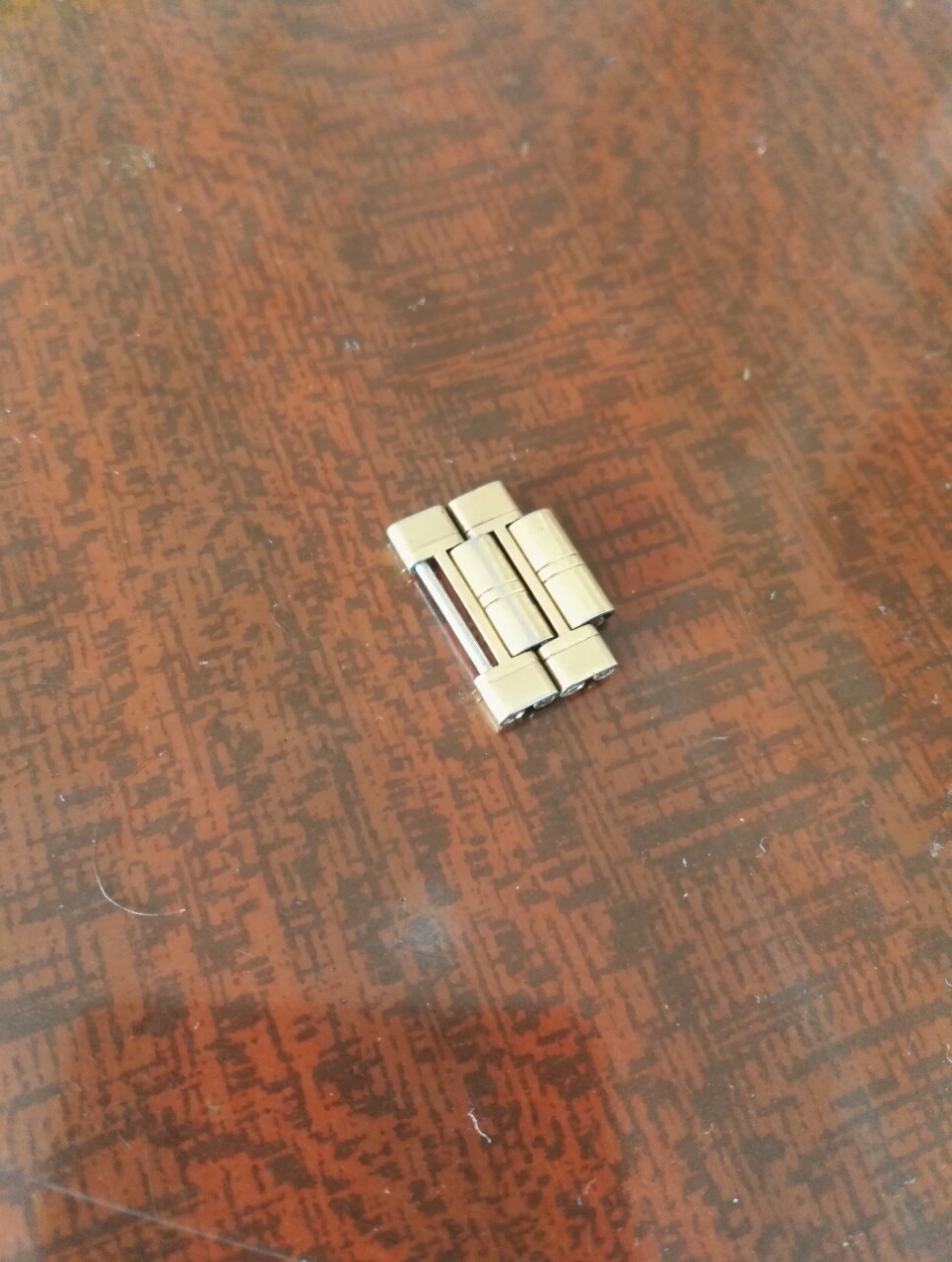 Позолоченный корпус 33 мм. без учета переводной головки с оригинальным браслетом, имеет потертость покрытия, без серьезных царапин. Оригинальная растягивающаяся застежка на пружине. Стекло полностью без царапин, капля воды катается как по сапфировому. На противоположной переводной головке стороне корпуса покрытие немного вспучено, в глаза не бросается. Покрытие переводной головки на выпуклой части стерто.