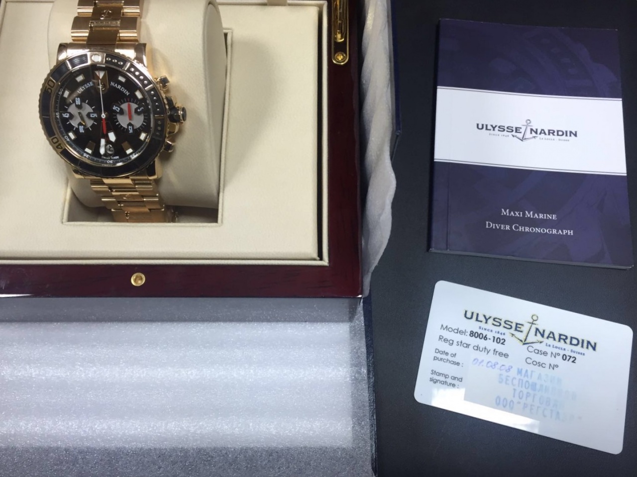 Продаются часы превосходные часы, Ulysse Nardin Maxi Marine Diver Chronograph 8006-102-8M/92, в отличном состоянии. Одевались 3 раза . Полный комплект: коробка, документы.