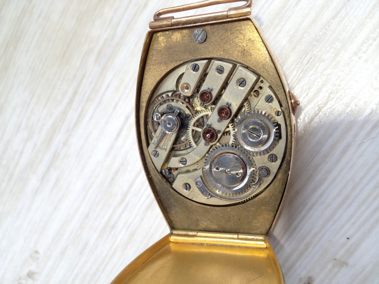 Фирма обозначена на циферблате. Циферблат посеребренный. Часы скорее женские, нежели мужские. Дефектные - нет заводной головки. Начало 20 века. Стиль арт-деко. Коллекционная ценность, полагаю, весьма небольшая. Механизм довольно интересный, сохранность хорошая.