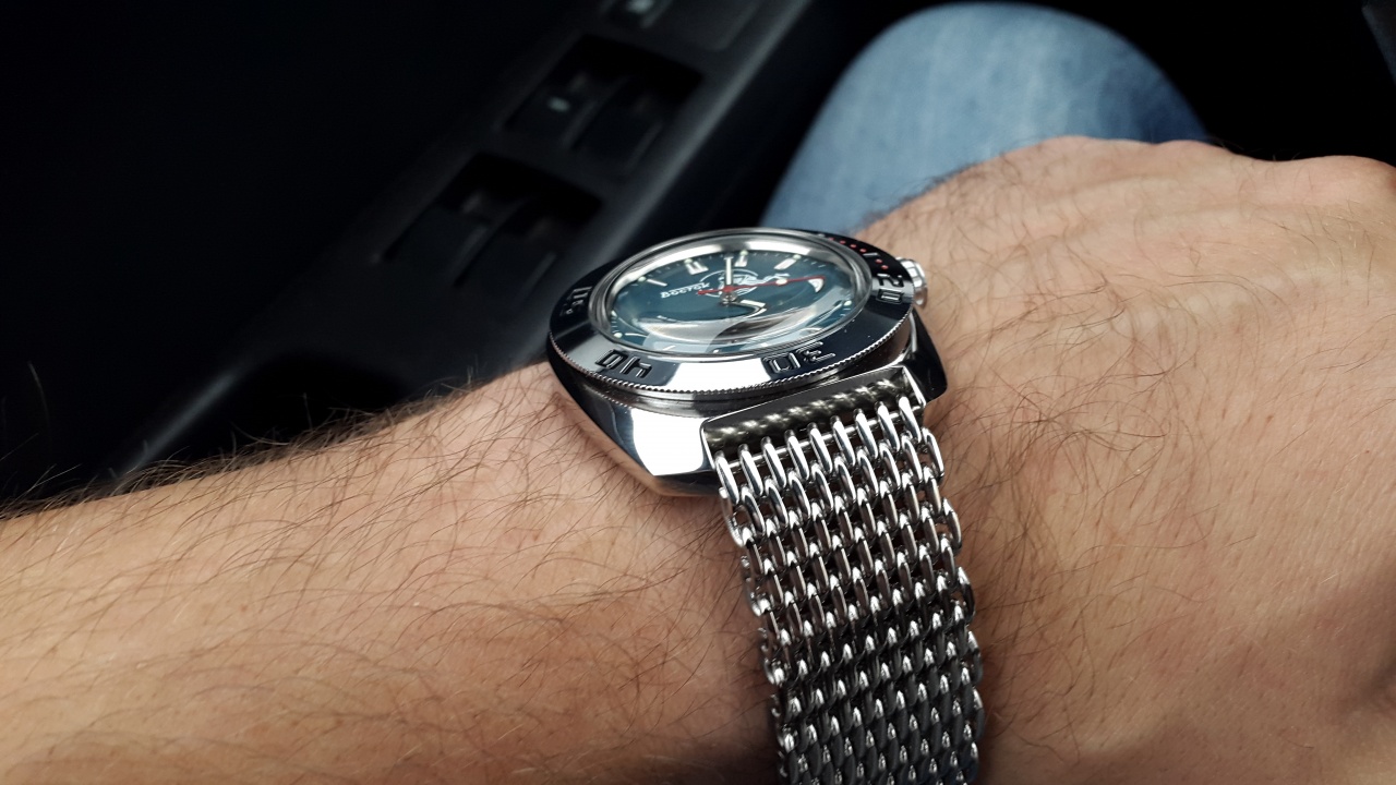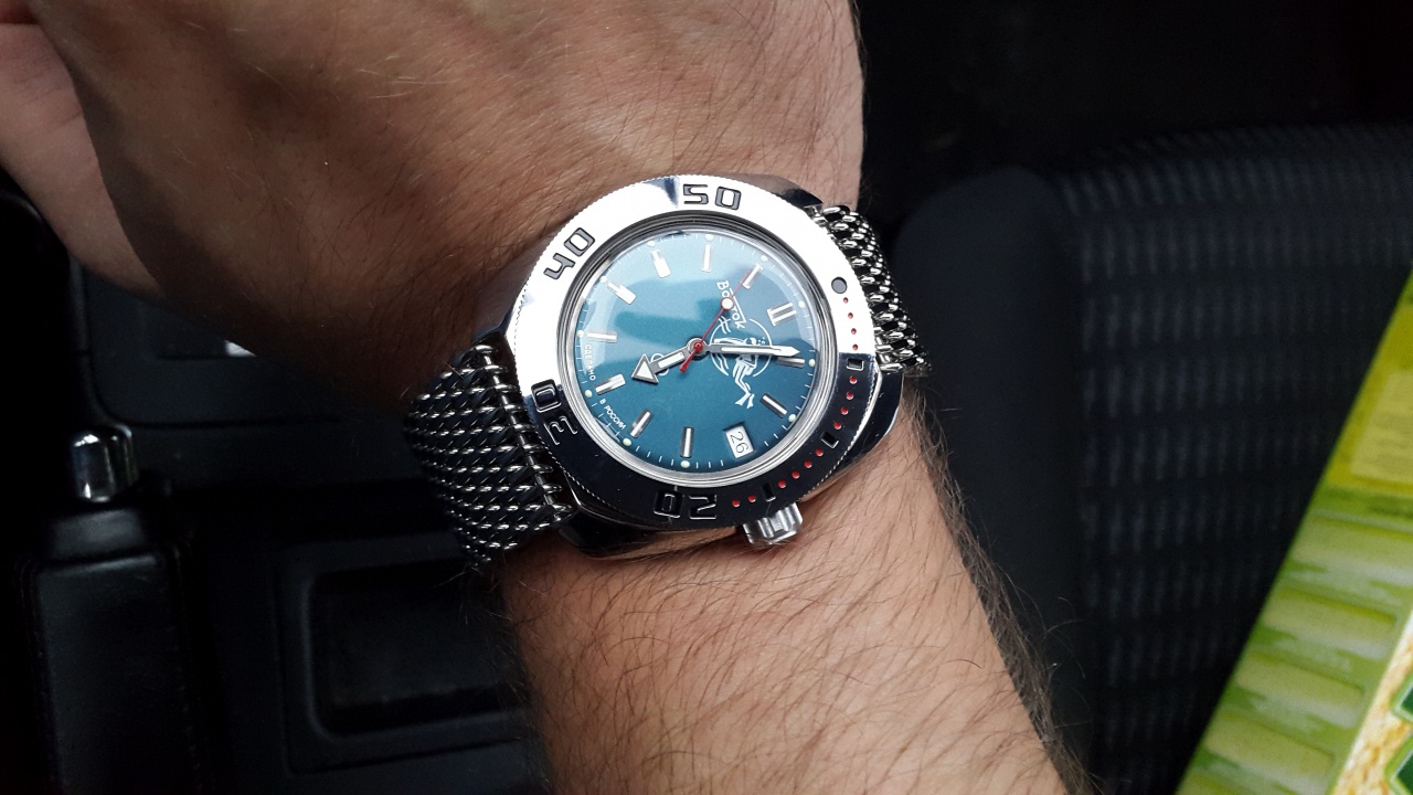 Куплена 3 недели назад у Меранома, с тюнинговой заводной головкой из нержавейки. Заводская гарантия 1 год. Продается в комплекте с отличным меш браслетом (длинна браслета 180мм + 45мм часы, тоесть на руку до 22см сядут легко). Крупное плетение, фрезерованная застежка.