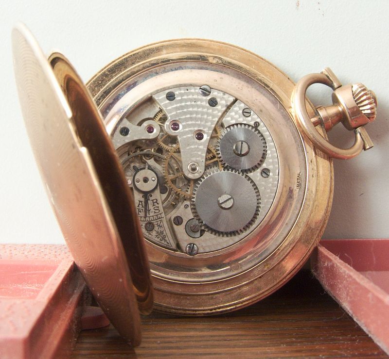 На данный момент меня интересует, что за механизм в этих часах и примерный год их изготовления (либо котлетирования). Так же интересует, если кроме 3-х крышек проб нигде не нашел, из золота ли сам корпус? Ободок, который удерживает механизм (на нем написано metal), я так понимаю, не золотой. Буду благодарен за помощь.