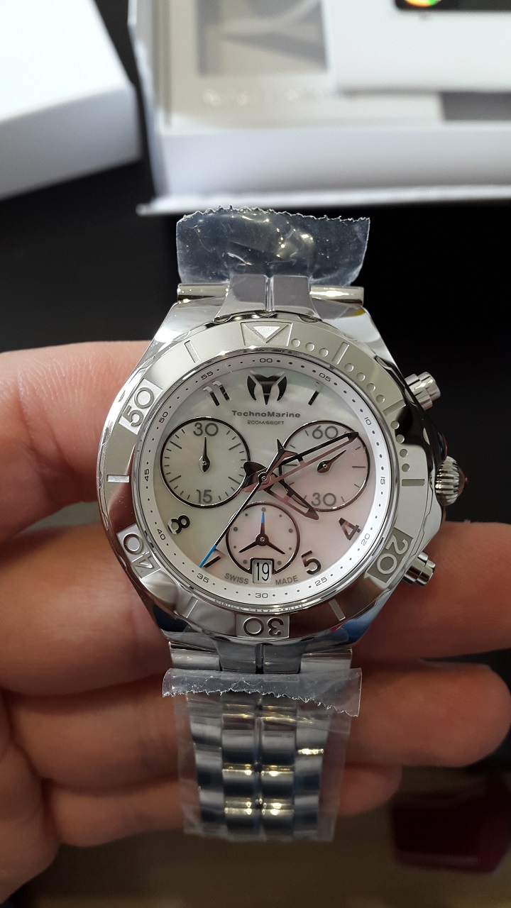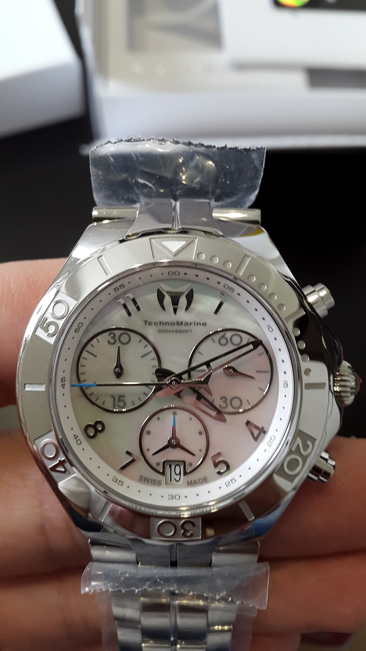 Продаю абсолютно новый женский швейцарский хронограф TechnoMarine 713012 (коллекция Sea Pearl). Водозащита 200м! Завинчивающаяся заводная головка. Модель достаточно редкая и пользуется прекрасным спросом на Западе у любительниц прекрасного. Отличное сочетание цены, изящности и практичности!