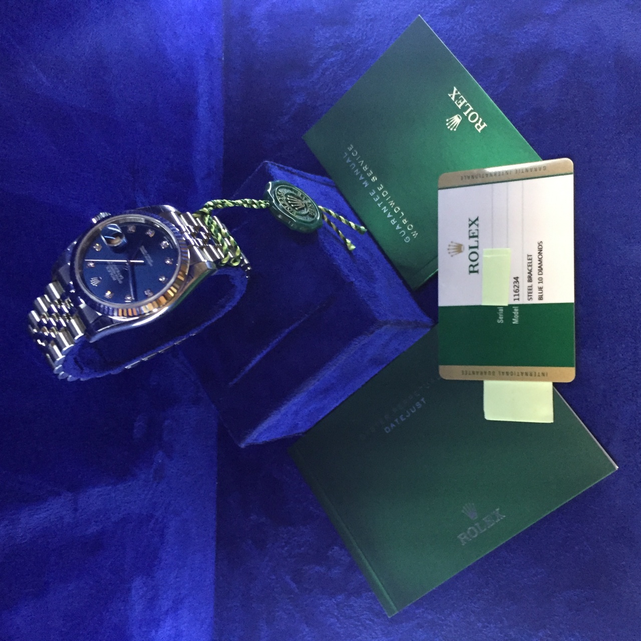 КОРПУС Oyster, 36 мм, сталь и белое золото, КОНСТРУКЦИЯ OYSTER Цельный корпус, привинчиваемые крышка и заводная головка, ДИАМЕТР 36 мм, МАТЕРИАЛ Белый Rolesor (сочетание стали 904L и 18-каратного белого золота), БЕЗЕЛЬ Рифленый, ЗАВОДНАЯ ГОЛОВКА Привинчиваемая, с системой двойной герметизации Twinlock, СТЕКЛО Сапфировое, устойчивое к появлению царапин, циклопная линза в окошке индикации даты, ВОДОНЕПРОНИЦАЕМОСТЬ До 100 м, МЕХАНИЗМ Perpetual, автоматический подзавод, КАЛИБР 3135, производство Rolex, ФУНКЦИИ Центральные часовая, минутная и секундная стрелки. Мгновенно устанавливаемая дата с возможностью быстрой корректировки. Возможность остановки секундной стрелки для выставления точного времени, ТОЧНОСТЬ Сертификат COSC, OСЦИЛЛЯТОР Синяя парамагнитная спираль Parachrom, ЗАВОД ЧАСОВ Автоматический подзавод в двух направлениях с помощью ротора Perpetual, БРАСЛЕТ Oyster, плоские трехрядные звенья, МАТЕРИАЛ БРАСЛЕТА Сталь 904L, ЗАСТЕЖКА Застежка Oysterclasp с раскладывающейся пряжкой и удлиняющим до 5 мм звеном Easylink, ЦИФЕРБЛАТ Синего цвета, Jubilee, бриллианты, ЗАКРЕПКА ДРАГОЦЕННЫХ КАМНЕЙ Бриллианты в оправе из 18-каратного золота