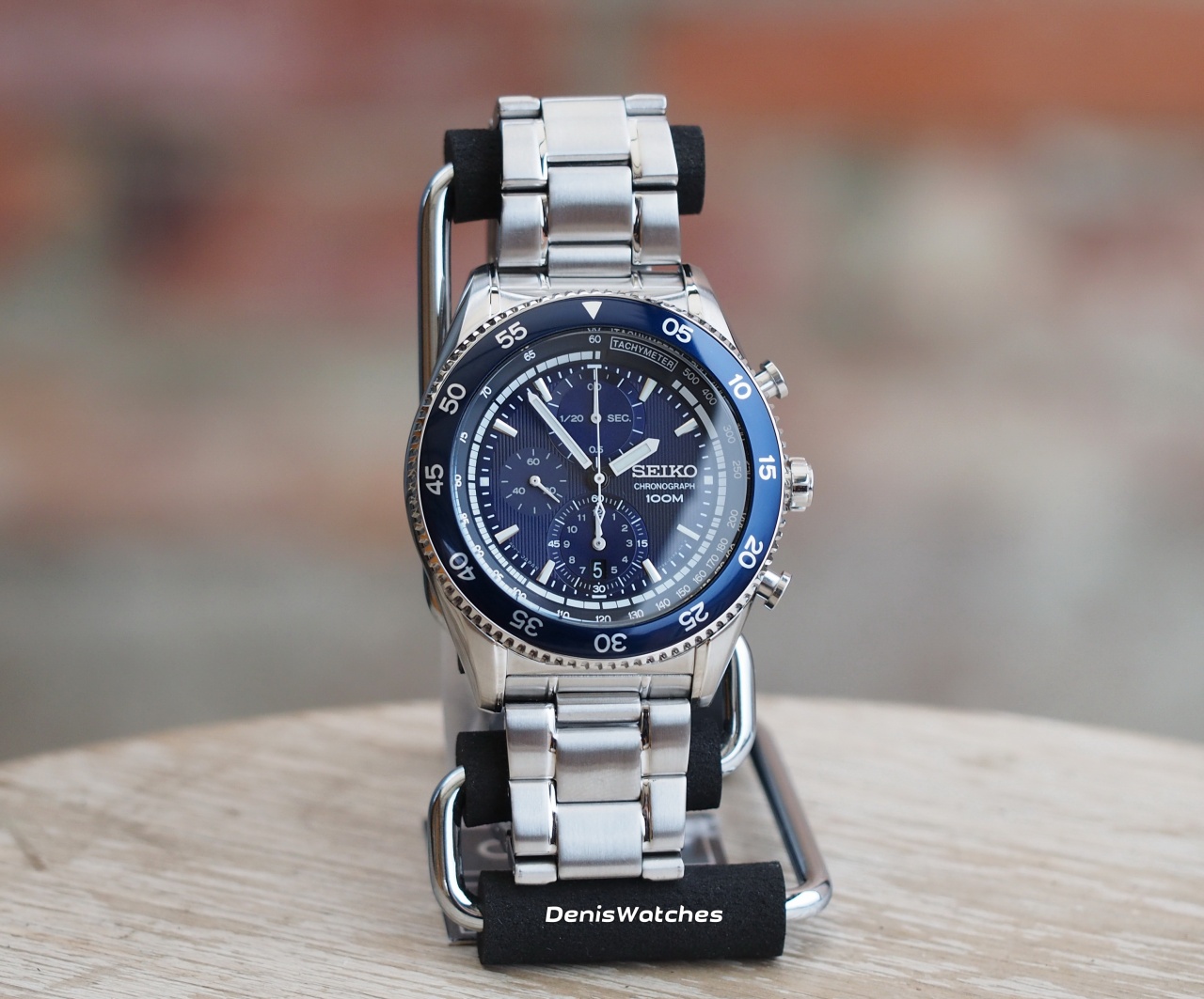 Спортивный хронограф красивого синего цвета на стальном браслете!