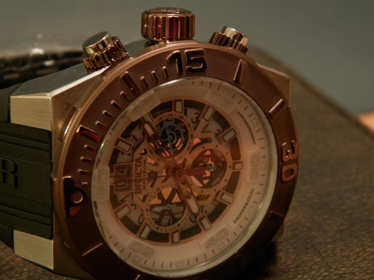 Муж. Invicta Aviator,хронограф,циферблат скелетонизирован,большая дата