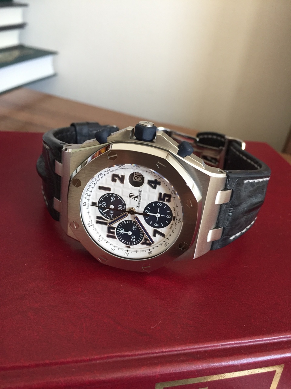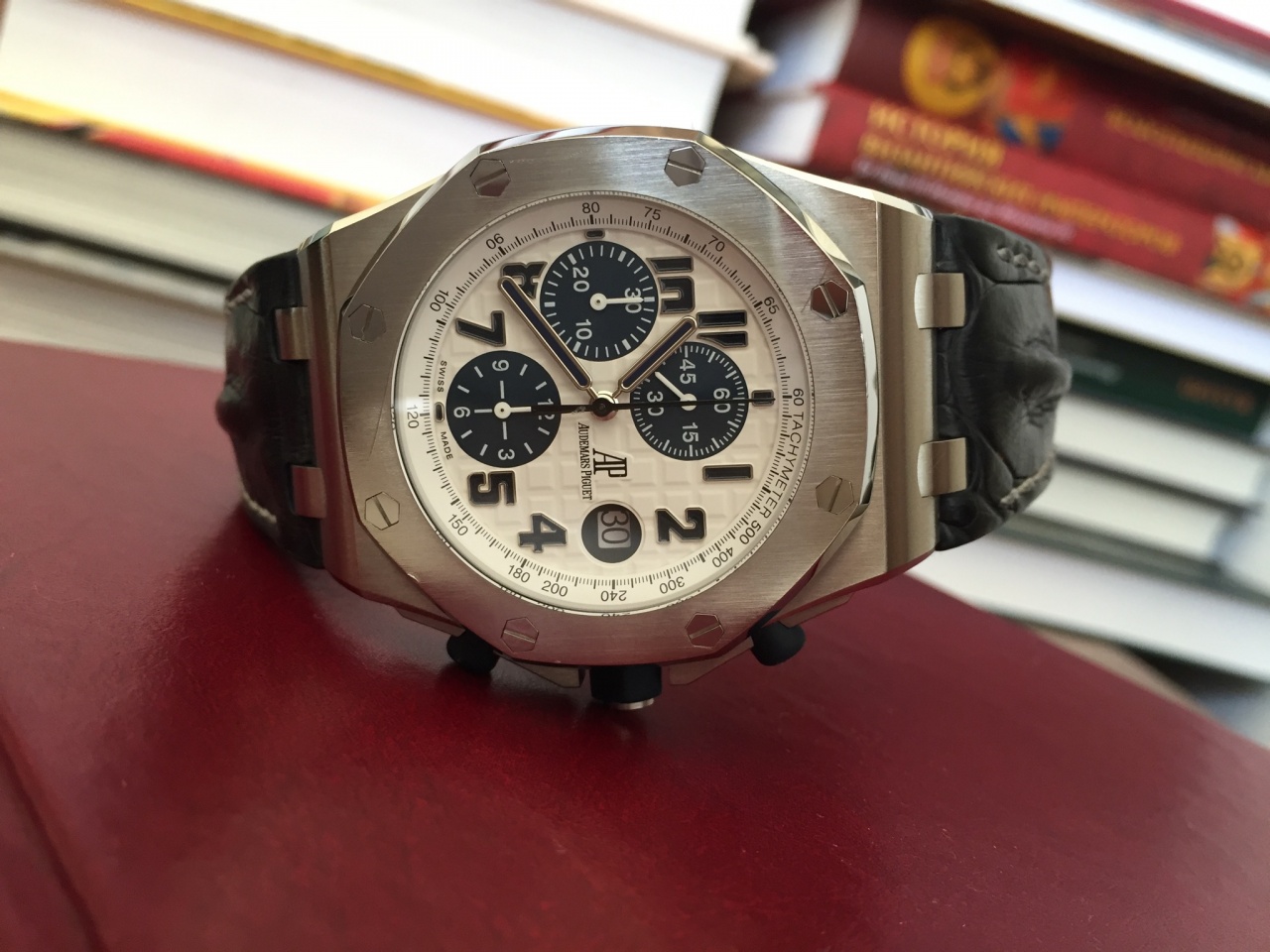 Продам AP ROO Navy. Есть пара царапин, можно убрать полировкой. Печать Российского дилера от декабря 2014 года + доп гарантия ещё на год пришла из бутика. Продавать в принципе не очень хочется, с деньгами проблем не испытываю в приоритете обмен на чтото интересное, с вашей или моей доплатой, например хронограф breguet marine в жёлтом золоте, aquanaut от PP на браслете, чтото из Rolex, например 116333 с зелёными цифрами, blancpain 50 Fatoms синий хронограф или лучше в золоте. Могу снять с продажи в любой момент.