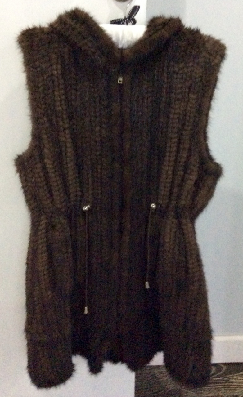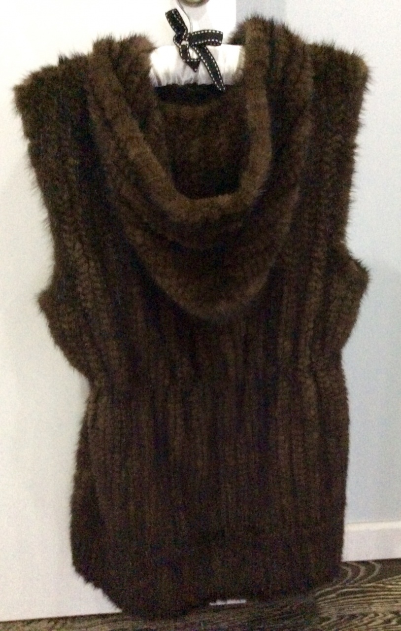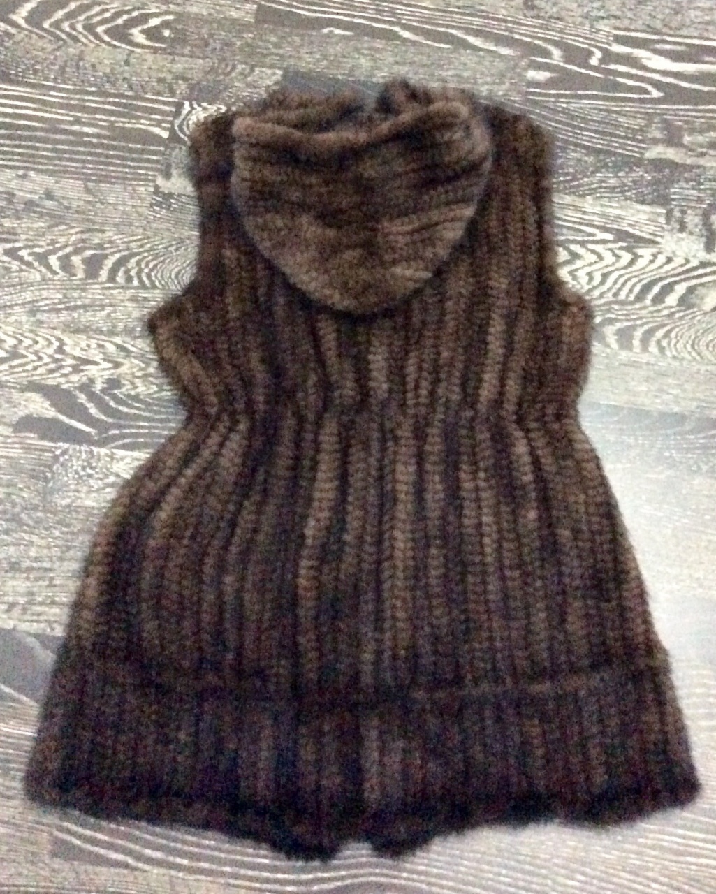 БЕЗРУКАВКА ИЗ ВЯЗАНОЙ НОРКИ, НОВАЯ, РАЗМЕР 44, ЦВЕТ ШОКОЛАД