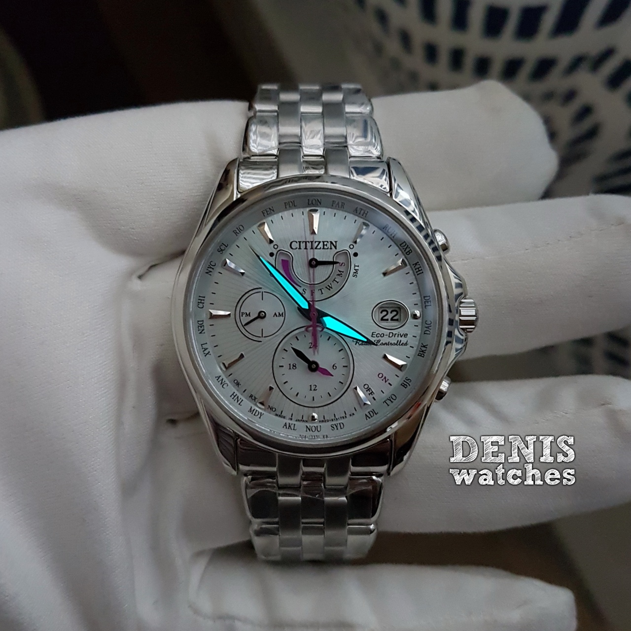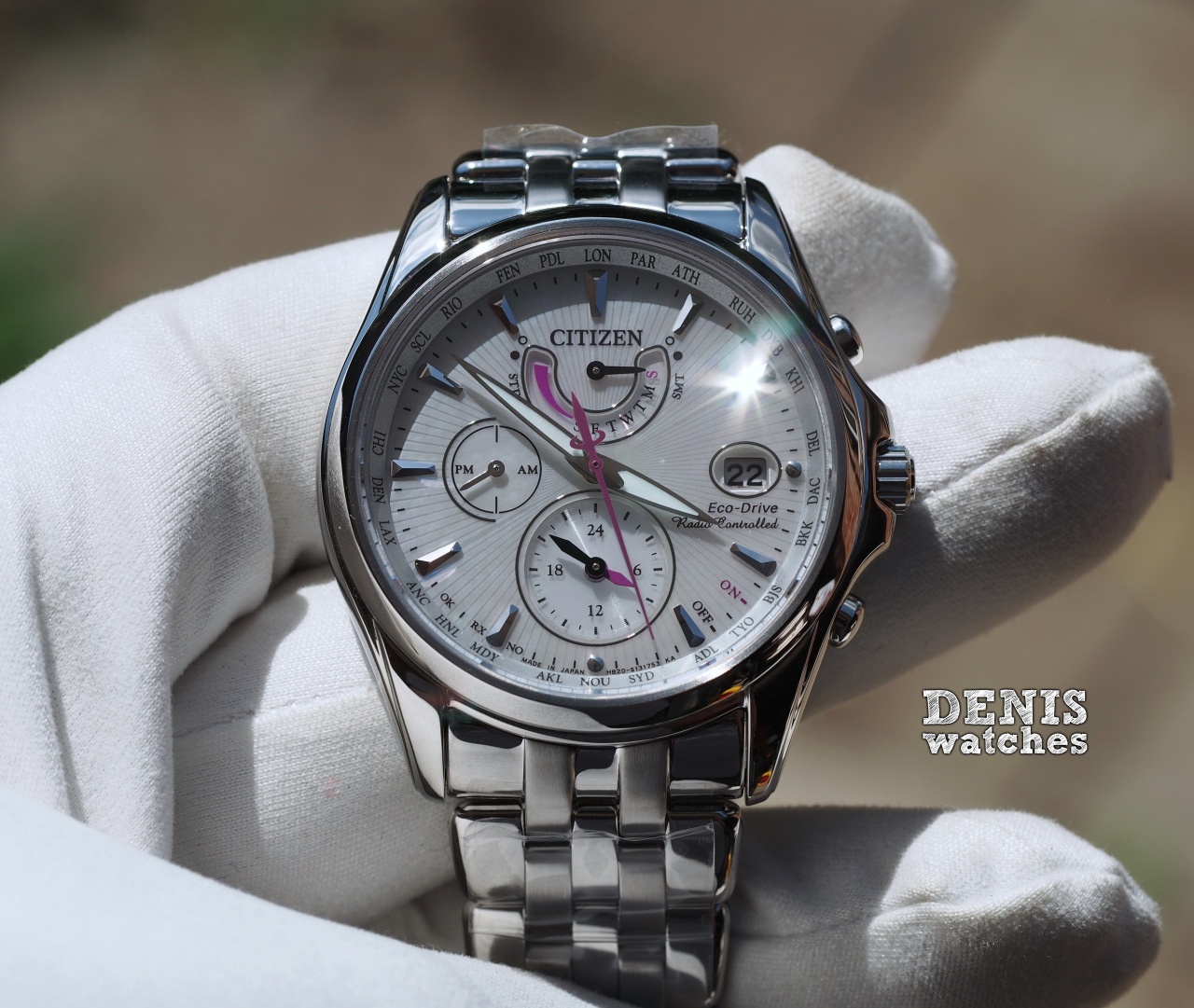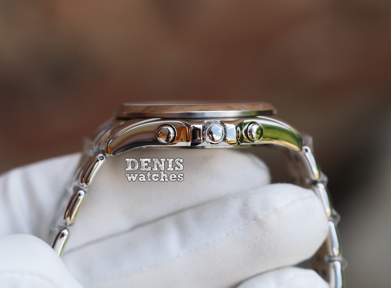 Перламутровый циферблат с небольшими фиолетовыми акцентами смотрится свежо и красиво!