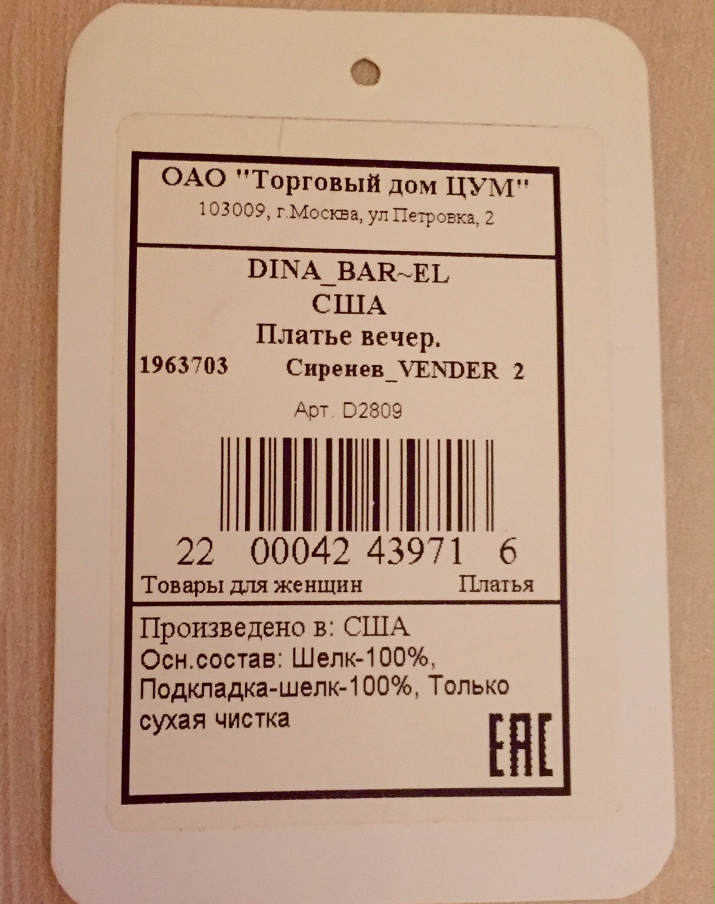 Приобреталось в ЦУМе на подарок. Не подошёл размер.