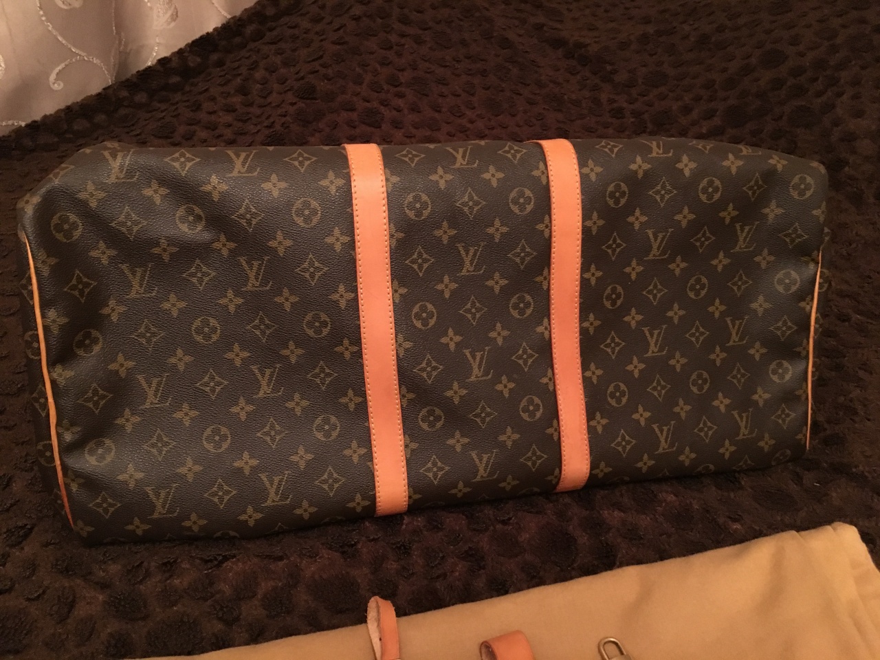 - Канва Monogram, коричневая подкладка из полотна, отделка из натуральной кожи теленка;