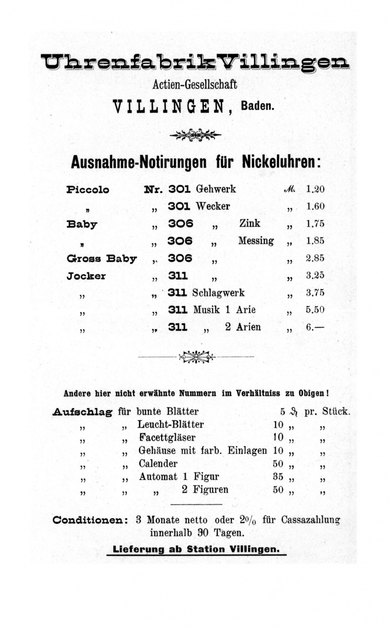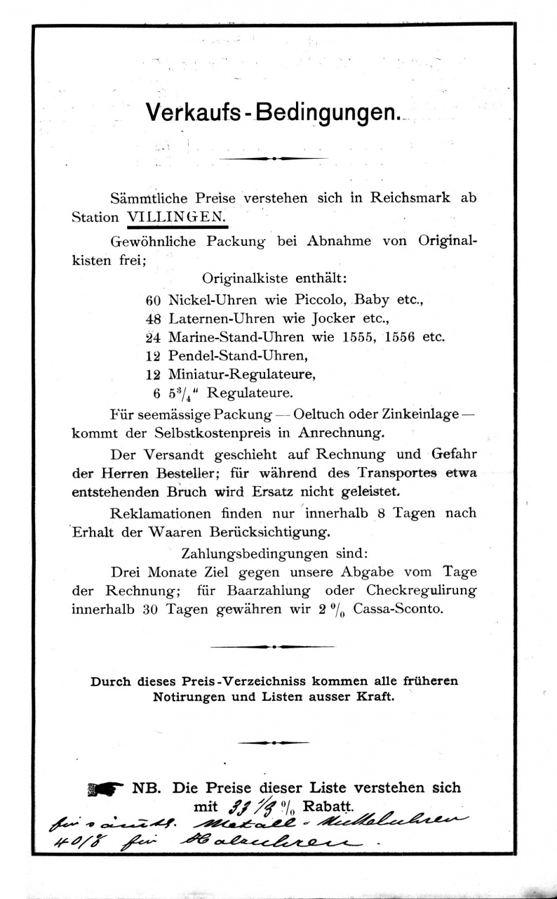 Каталог и прейскурант "Uhrenfabrik Villingen" 1901 го