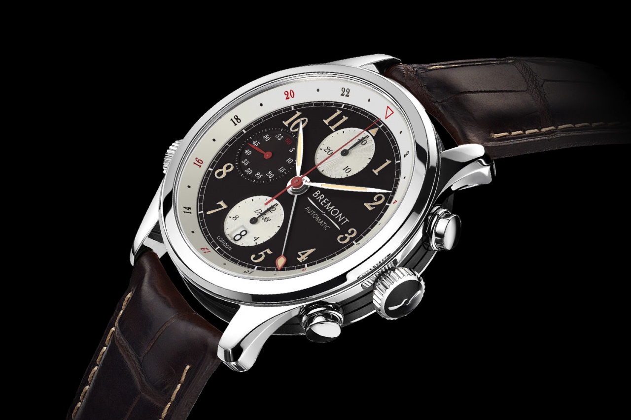 Круглый полированный корпус новинки с боковыми стенками, выполненными из нержавеющей стали с черным DLC-покрытием, диаметром 43,0 мм, толщиной 16,2 мм, водонепроницаемый до 100 метров. На торце крупной рифленой заводной головки, расположенной на 3 часах, выгравировано изображение пропеллера - эмблемы бренда Bremont. Пушеры хронографа размещены на 2 и 4 часах, а на 8 часах - головка управления вращающимся внутренним ободком белого цвета, в виде фланца циферблата, с 24-часовой разметкой. Сапфировое стекло установлено на передней стороне часового корпуса и на его завинчивающейся задней крышке. Циферблат черного цвета с напечатанными арабскими цифрами и часовыми индексами, покрытыми, как и часовая и минутная стрелки (выполненные в листьевидной форме) люминесцентным составом. Модель оснащена швейцарским автоматическим механизмом Bremont BE-54AE (базовый калибр ETA 7750), на 25 камнях, с балансовой частотой 28800 полуколебаний в час (4 гц), 42-часовым запасом хода, официально сертифицированным COSC (Contrôle Officiel Suisse des Chronomètres) в качестве хронометра, с функциями индикации часов, минут (посредством соответствующих центральных стрелок), секунд (на соответствующем малом боковом циферблате, расположенном на 9 часах), даты (посредством соответствующего цифрового указателя в прямоугольной апертуре, расположенной на 6 часах), времени второго часового пояса (посредством специальной центральной GMT-стрелки с наконечником с красной окантовкой, на вращающейся 24-часовой круглой шкале, расположенной на периферии циферблата), а также с хронографом (центральная секундная стрелка красного цвета, круглый аналоговый 30-минутный счетчик, расположенный на 12 часах, круглый аналоговый 12-часовый счетчик, расположенный на 6 часах). На роторе автоподзавода, просматриваемом через прозрачную заднюю крышку часового корпуса, имеется вставка в виде пропеллера, изготовленная из еловой фанеры от фюзеляжа исторического самолета De Havilland Comet DH-88 "Grosvenor House", 1934 года выпуска.