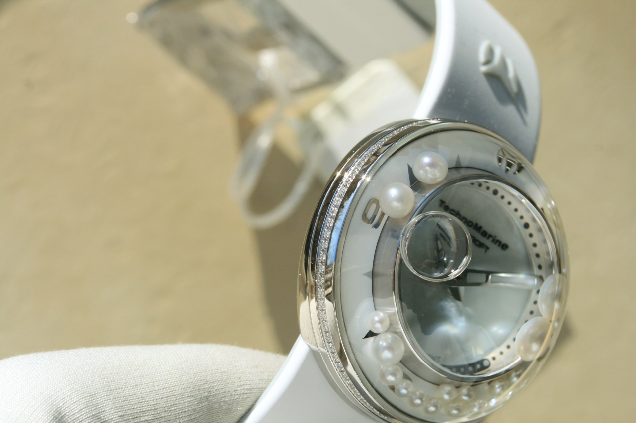 [женский "пузырь"] TECHNOMARINE AQUASPHERE * 88 бриллиантов * 28 жемчужин * белый каучук * 2 ремня