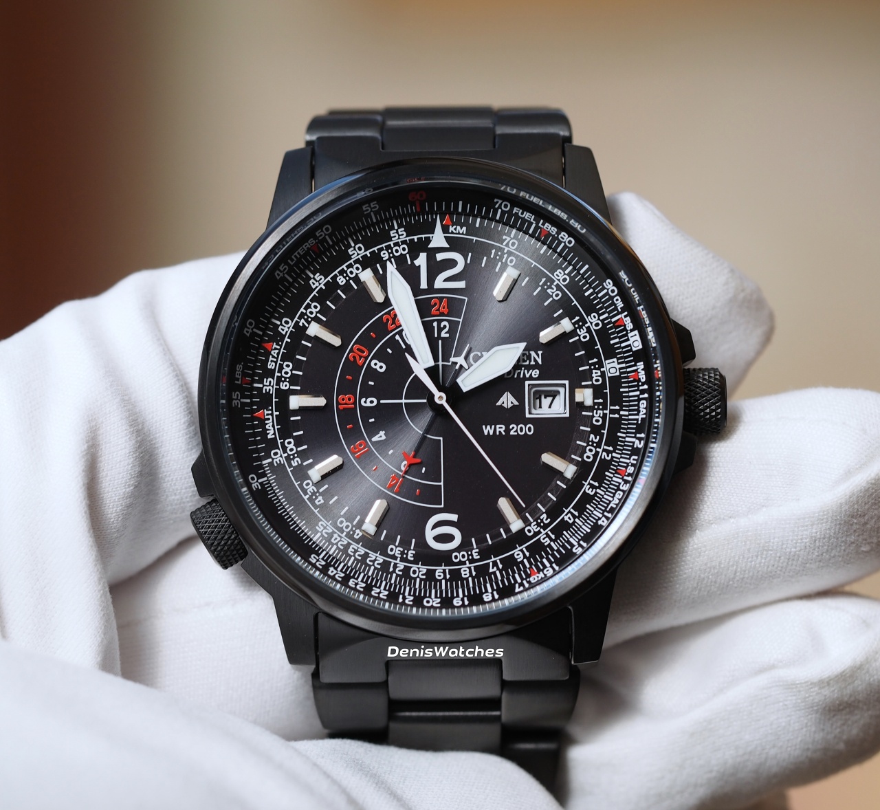 Полностью черный "Ночной Ястреб" от Citizen, очень популярная модель в авиационном стиле с отличным соотношение цена/качество!