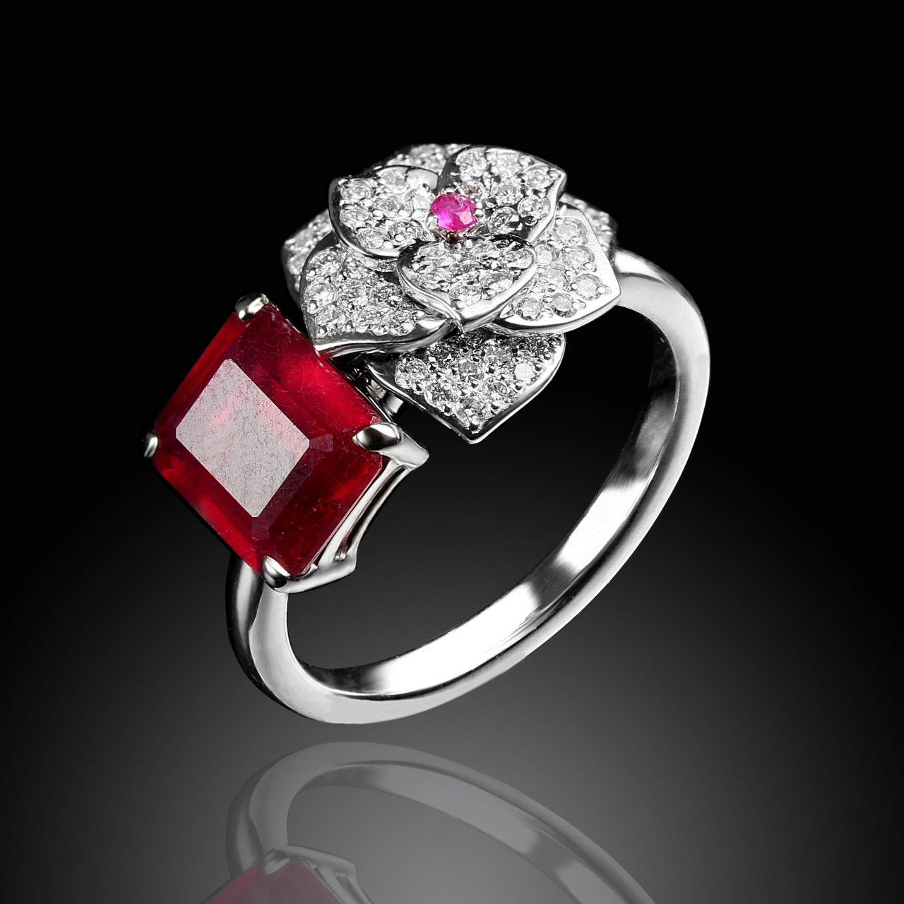 В продаже великолепное кольцо из белого золота с рубином 2,23 карат и бриллиантами 0,34 карат.
