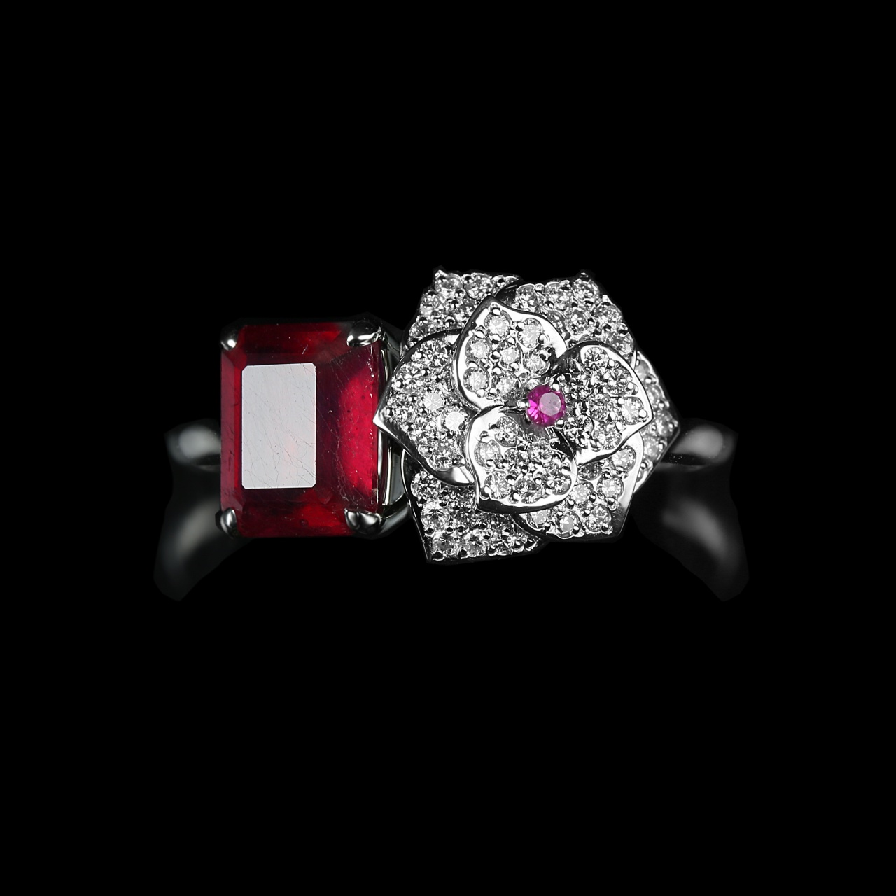 Кольцо из белого золота с рубином 2,23 карат и бриллиантами 0,34 карат