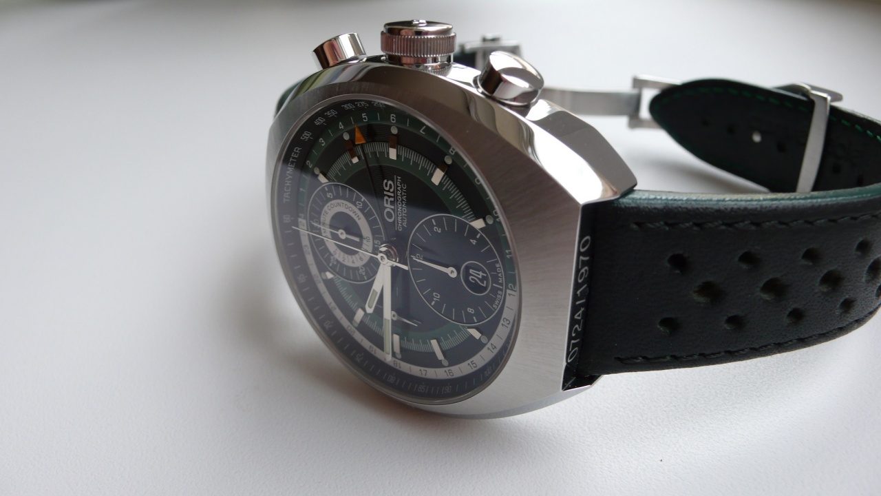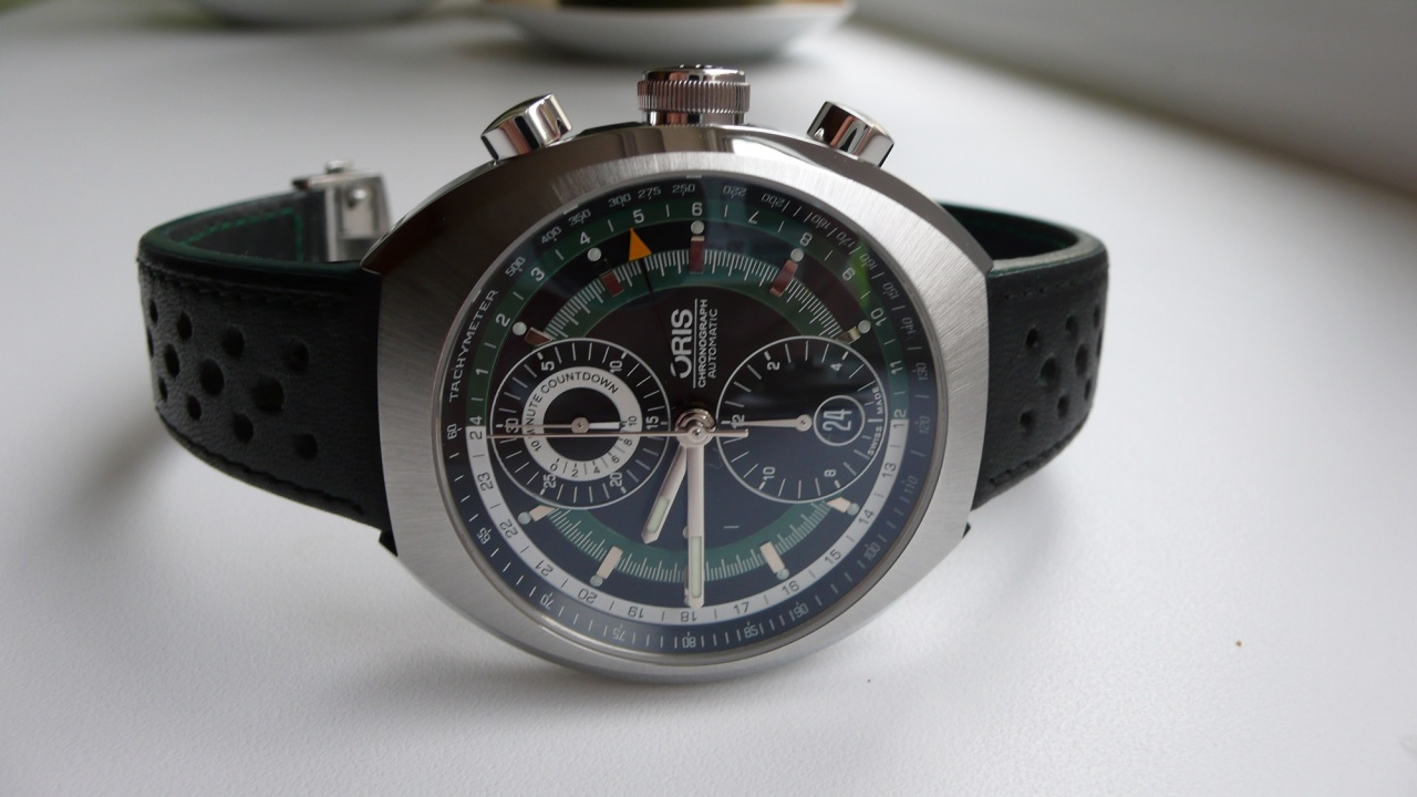К продаже предлагаются прекрасные часы-Oris Chronoris Grand Prix '70. Для создания этих часов дизайнеры Oris подчерпнули вдохновение в стиле 1970-х годов.Каждая деталь часов выполнена в стиле ретро,но при этом наполнена современными технологиями.У этих часов есть все необходимое: тахиметрическая шкала, хронограф и указатель времени второго часового пояса.Настоящий гоночный стиль 1970-х. Размер корпуса 42,5 мм. Специальная подарочная шкатулка, кожаные перчатки автомобилиста в стиле ретро. Ограниченная серия 1970 экз. Часы в состоянии новых. Полный комплект документов, включая магазинный чек. Розничная цена данных часов 3100 евро. Любые проверки.Возможен небольшой разумный торг. Обмен не интересен.