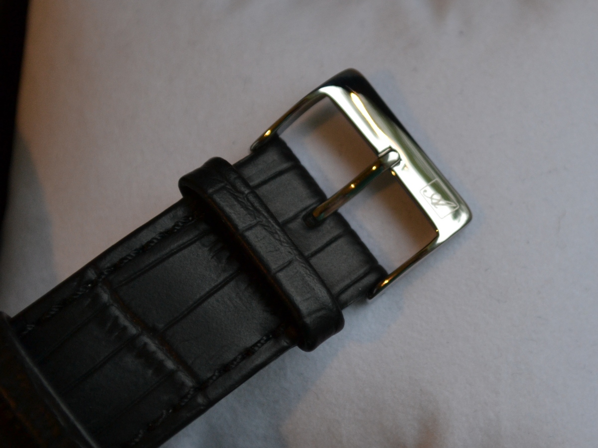 Часы оснащены сложным кварцевым механизмов: ретроградная индикация дня недели и даты,