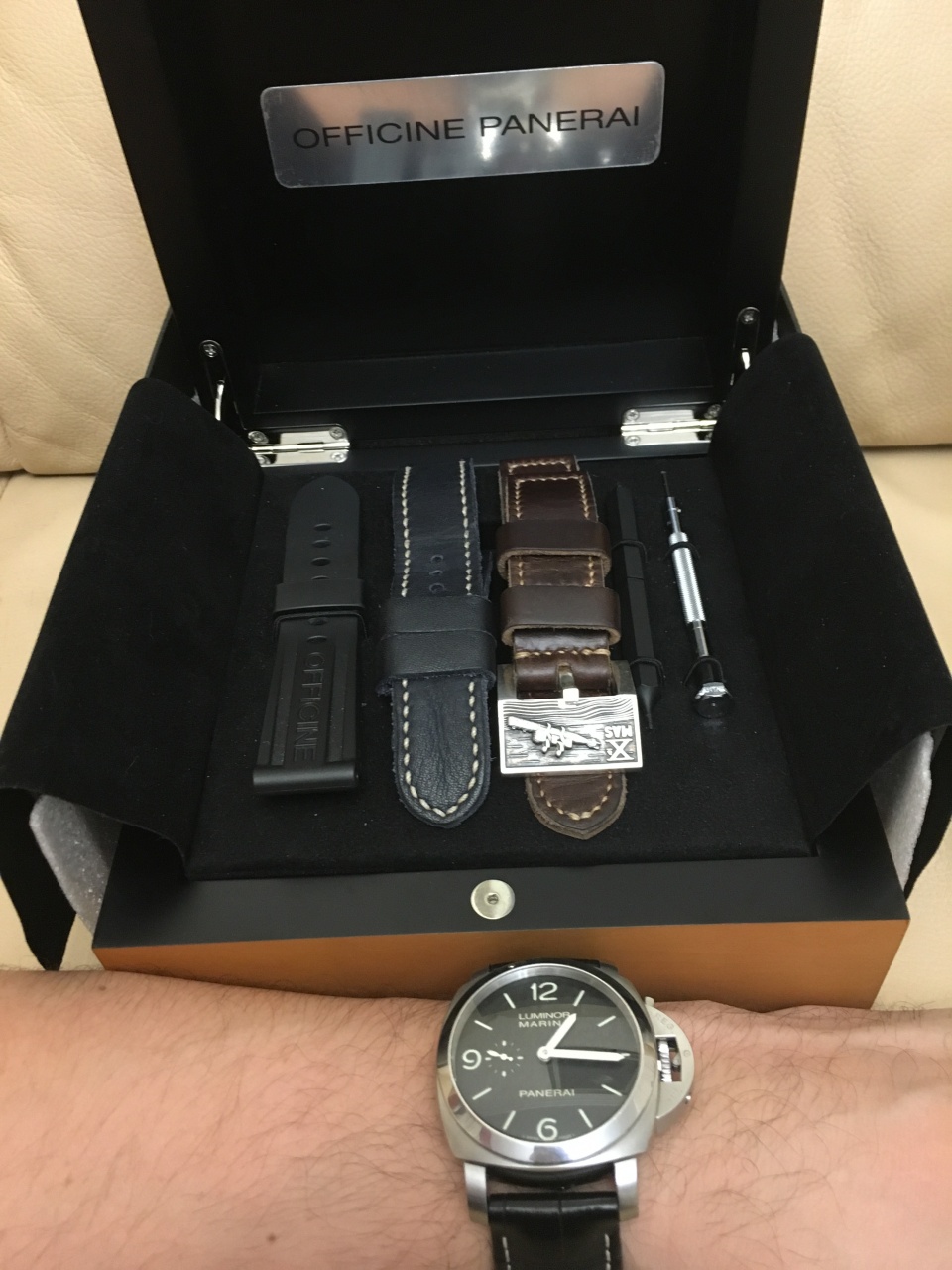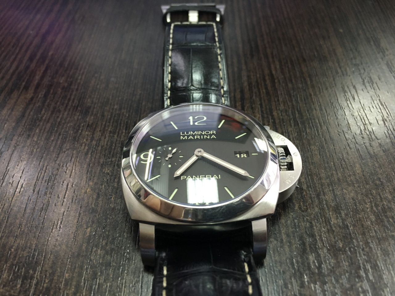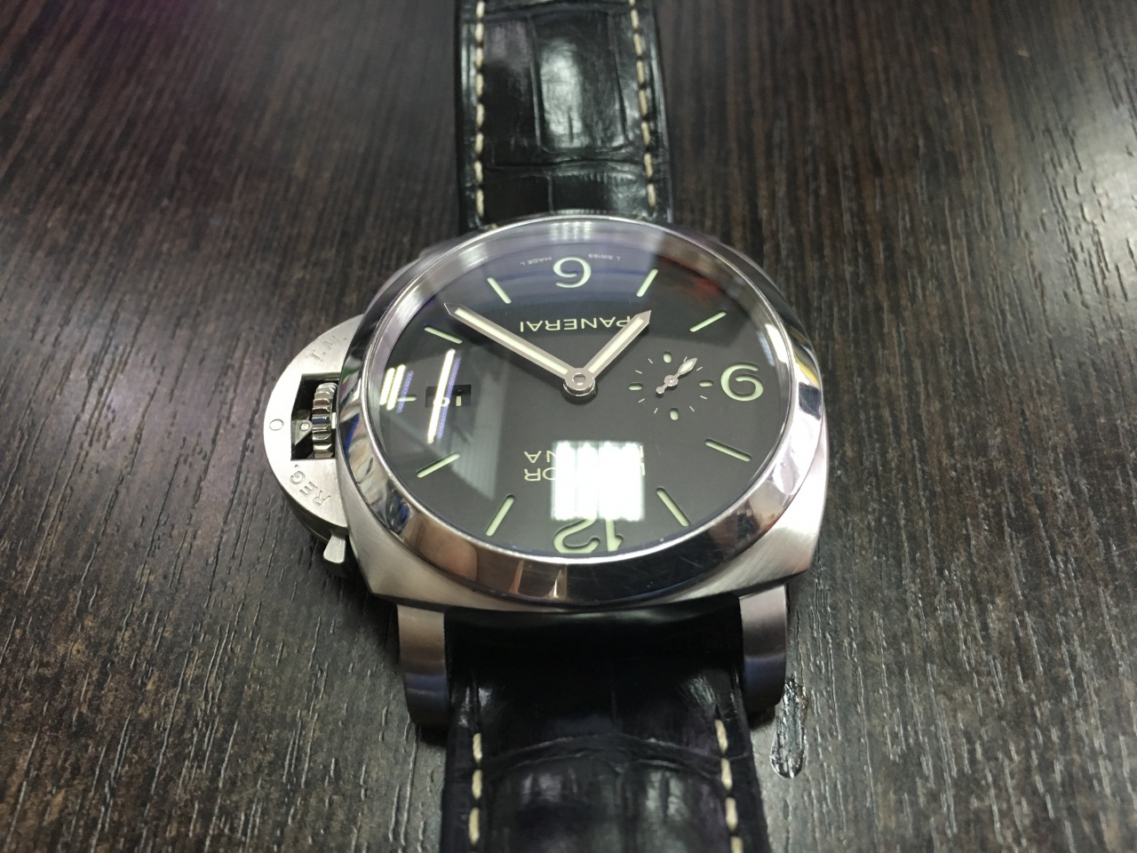 Продам свои замечательные часы ПАМ 312. Куплены около трех лет назад (ИЮНЬ 2013) в Конквесте. Состояние отличное - присутствуют немного заметные естественные следы носки практически только на полированном безеле. Комплект полный, ремни ОРИГИНАЛ черный крокодил и каучук. Корпус пожалуй самой фанатской коллекции LUMINOR 1950: истинно мужской дизайн, крупный 44мм, циферблат СЭНДВИЧ, сапфир с двух сторон и конечно же СКОБА - ведь совокупность этих факторов и делает ПАМ столь узнаваемым и желанным!!!