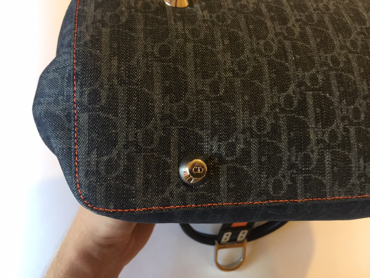 Сумочка-саквояжик из плотного денима с узором-монограммой Christian Dior. оригинал, Отделка и ручки натуральная кожа.
