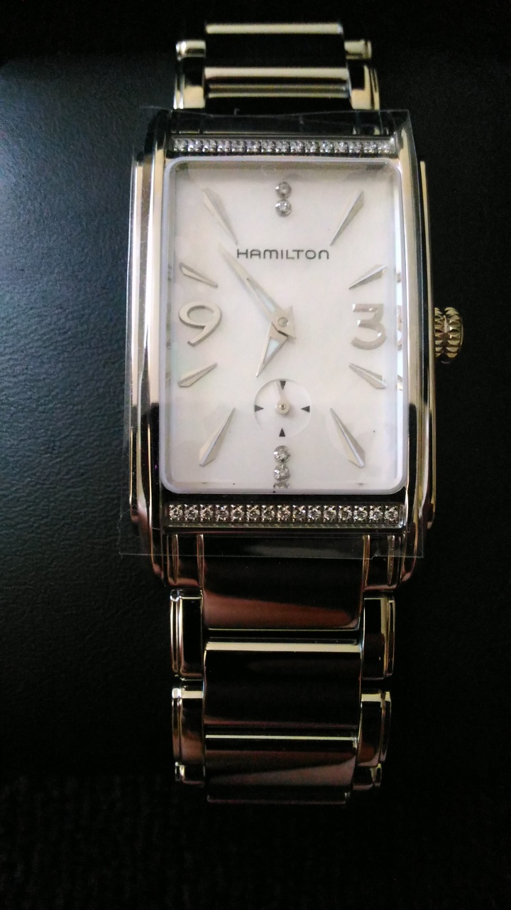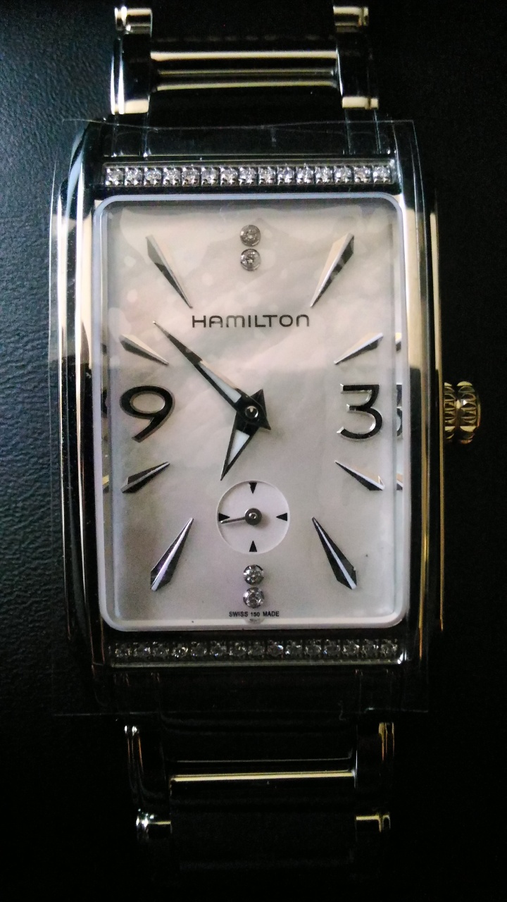 Циферблат часов белый, перламутровый, украшен брилиантами (4 шт) на позиции 6 и 12 часов. Характеристики камней есть на карточке сертификата