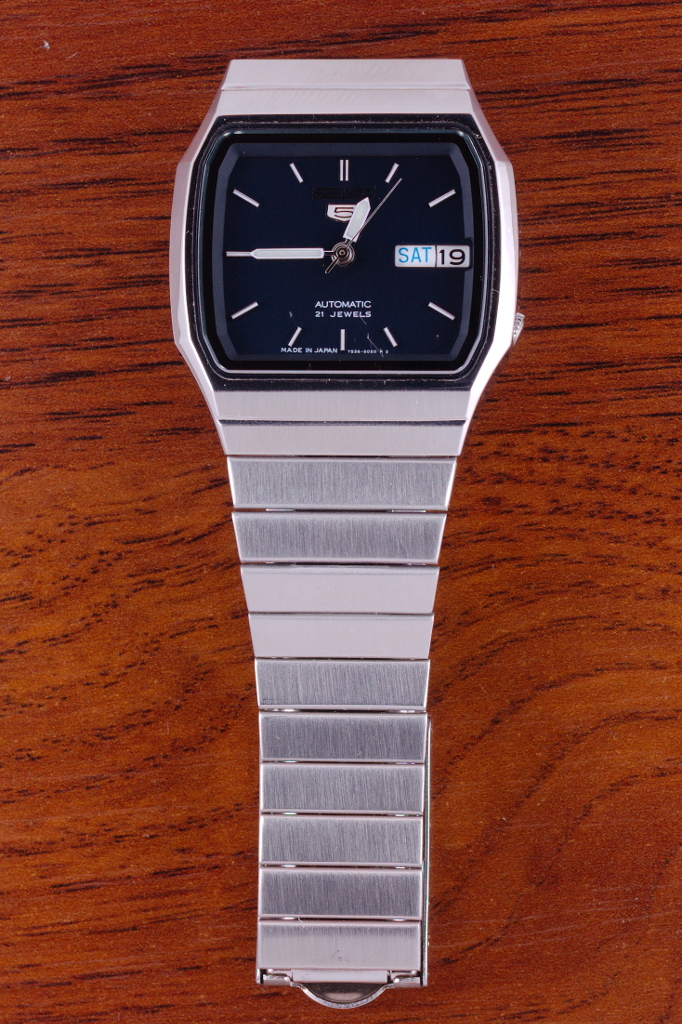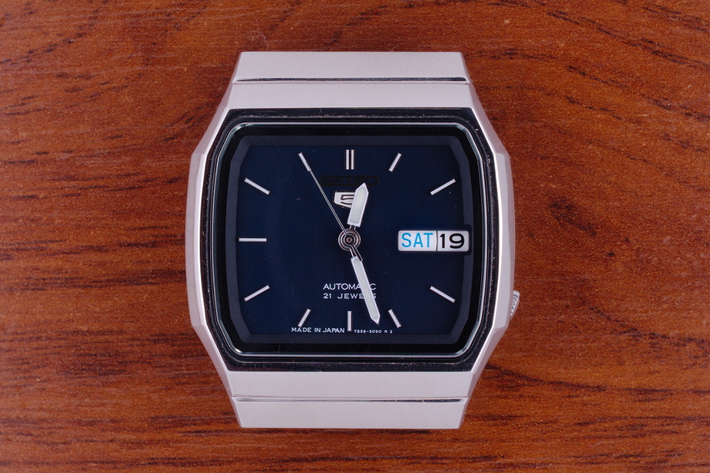 В продаже отличная пятерка производства Японии. Надежный механизм с автоподзаводом 7S26, прозрачная задняя крышка, небольшой размер, ретро-дизайн, необычный цвет циферблата. Небольшой обзор и немного фото