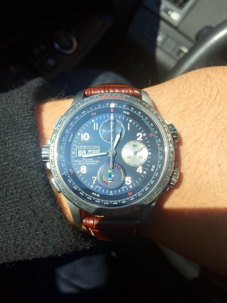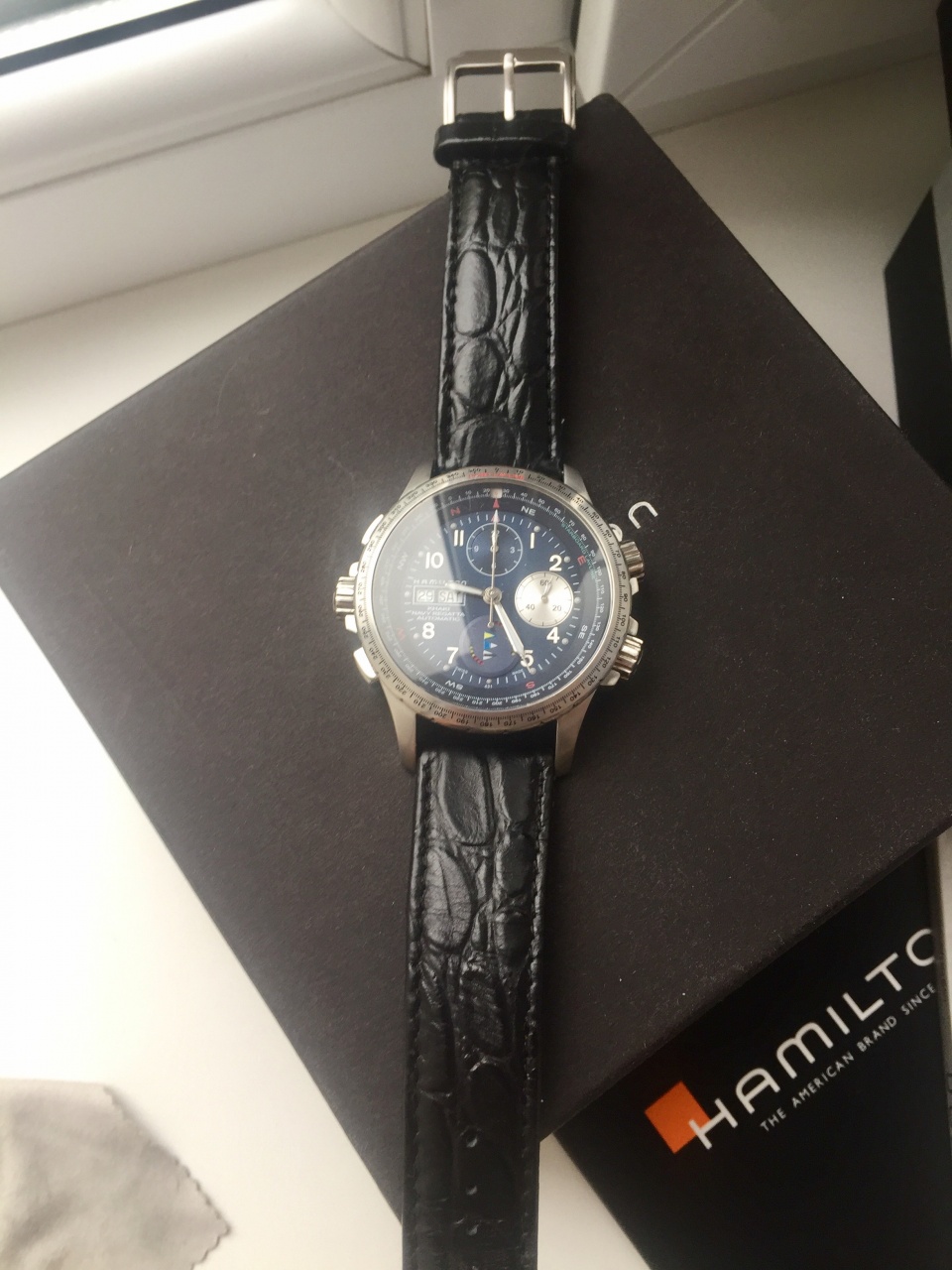 Брутальный Hamilton khaki navi regatta chrono