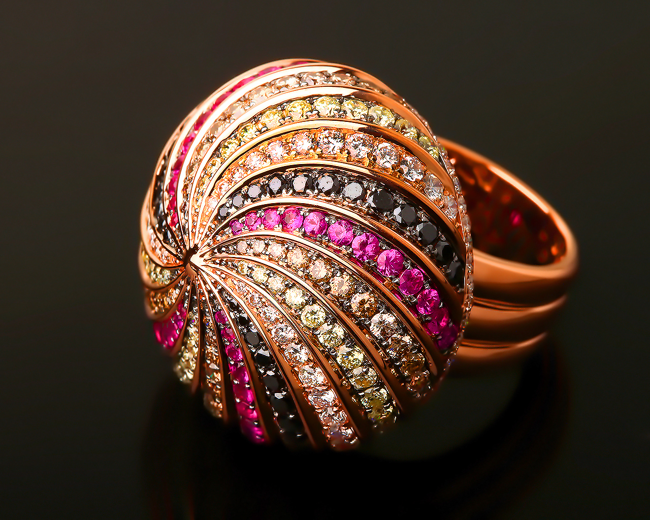 Золотое кольцо с бриллиантами 5.33ct и сапфирами