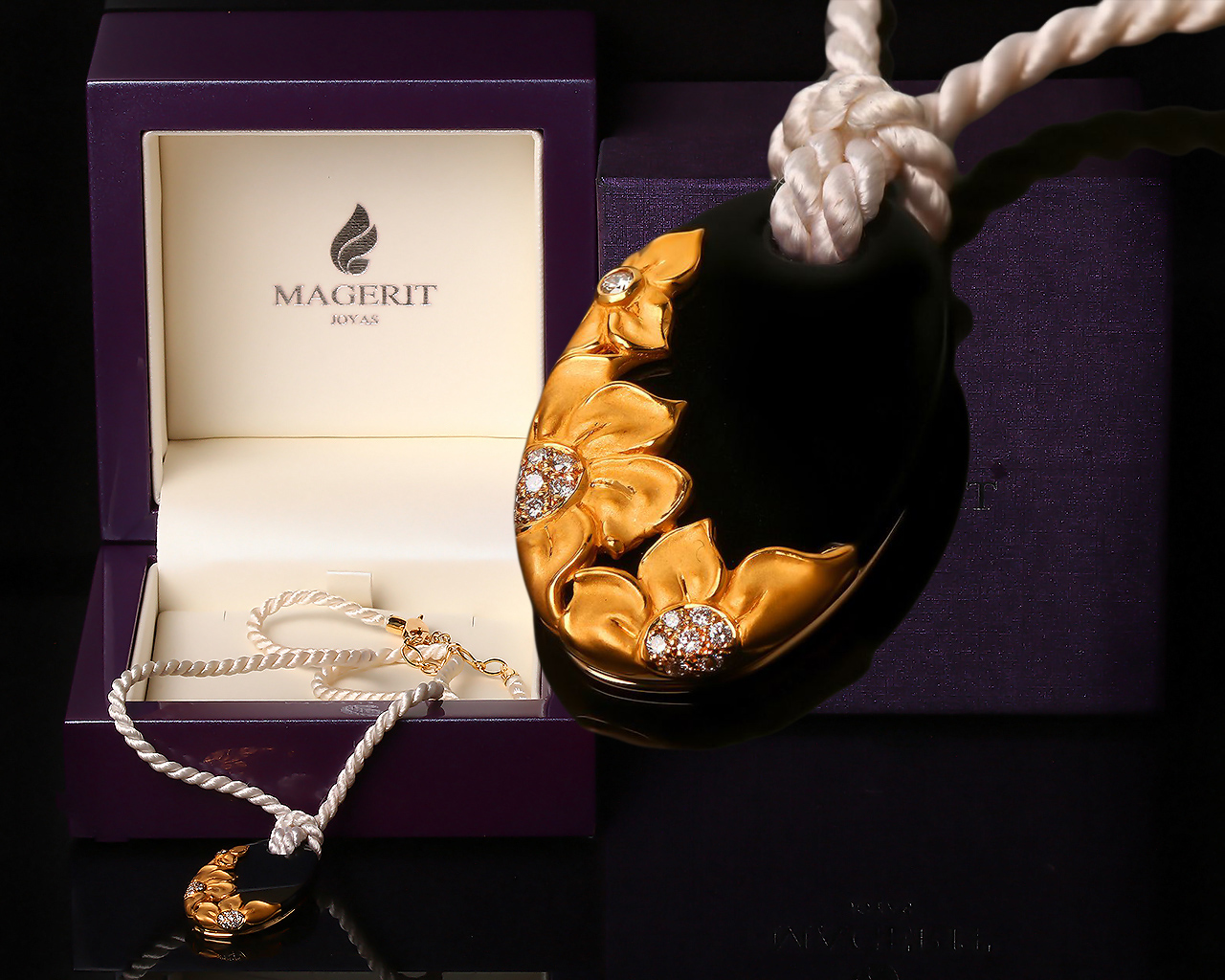 Золотой кулон с бриллиантами и ониксом.Magerit.