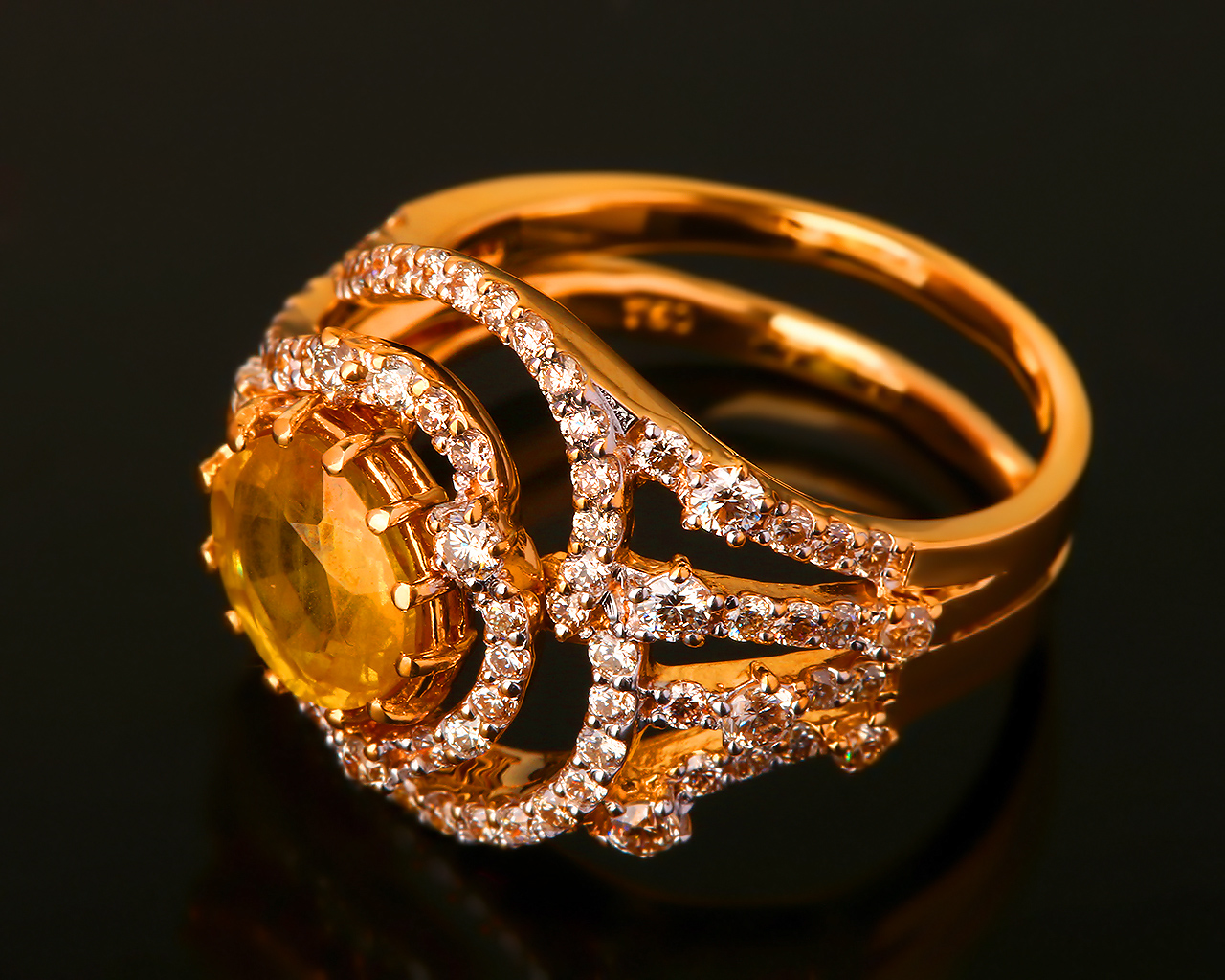Золотое кольцо с сапфиром и бриллиантами 1.32ct.