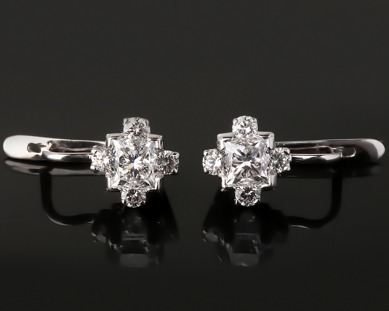 | бриллиант 1 карат, бриллиант принцесса, серьги |