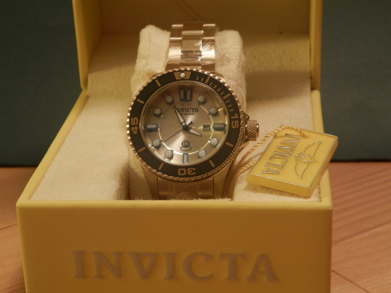 Жен. Invicta Pro Diver,, цвет- золото, безель графитовго цвета,38 мм, 300M