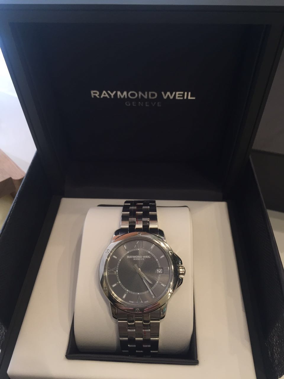 Полный комплект, гарантия 2 года с расширением до 3-х лет (при регистрации на сайте Raymond Weil).